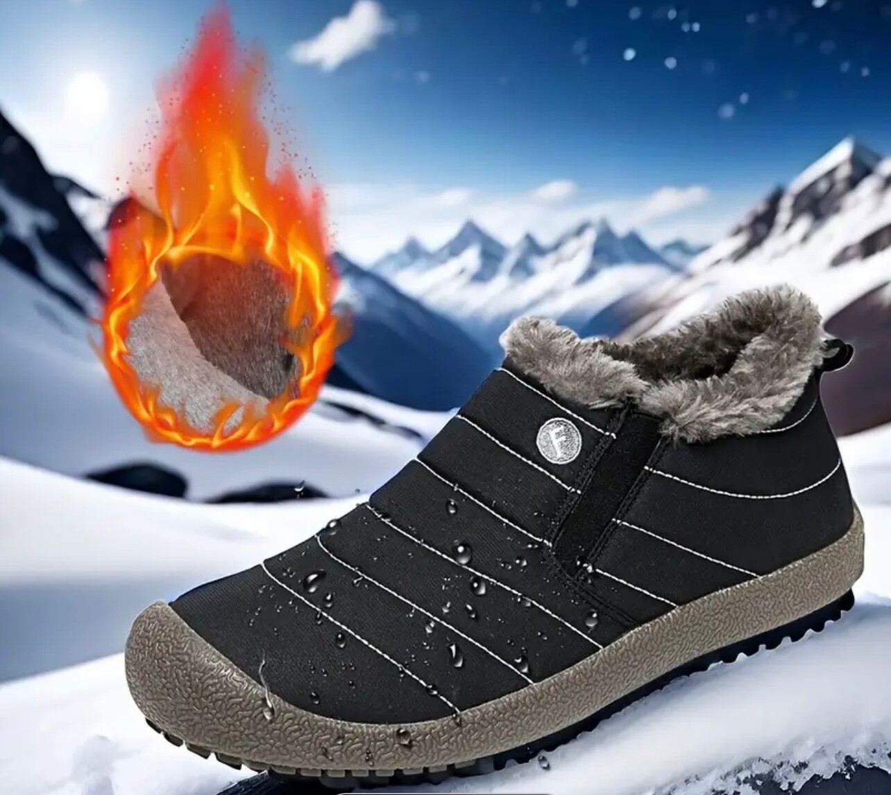 Black Size 11 Warm Winter Anti Slip Snow Boots - Fur Lined Fleece Ankle Boots for Men and Women