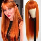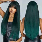 Black Colored Synthetic Hair Wigs For Women Long Silky Straight Hair Wig With Bangs Glueless Wigs For Daily Party Cosplay Wear