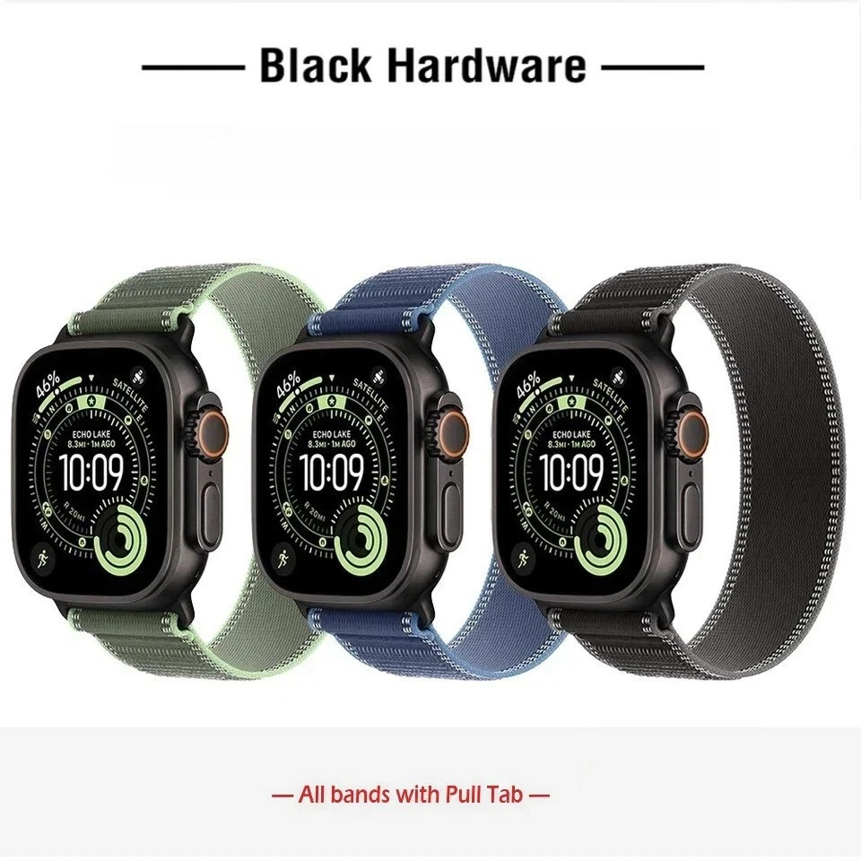 NEW Ocean Band /Trail /Alpine Loop for Apple Watch 11 10 9 8 7 6 5 SE 44/45/46/49mm Ultra 3 2 Features: ● 100% Brand new and high quality. Features: ● 100% brand new and high quality. ● Alpine Loop comes with black hardware ( Black adaptor & Black G-hook) ● Trail Loop comes with black hardware ( Black adaptor & orignial pull tab) ● Ocean Band comes with black hardware ( Black adaptor & orignial black buckle) ● One free size fit for 5.51"-8.26"(140mm-210mm) wrists. Compatible With: > For Apple Watch Ultra / Ultra 2 / Ultra 3 > For Apple Watch Series 11 / Series 10 / Series 9 / Series 8 / Series 7 / Series 6 / Series 5 / Series 4 / Series 3 / Series 2 / Series 1 / > For Apple Watch Nike > For Apple Watch Hermes > For Apple Watch SE / SE 2 / SE 3 Package Includes: 1x Apple Watch Sport Band ONLY!!! (PS: The Apple Watch is Not Included)
