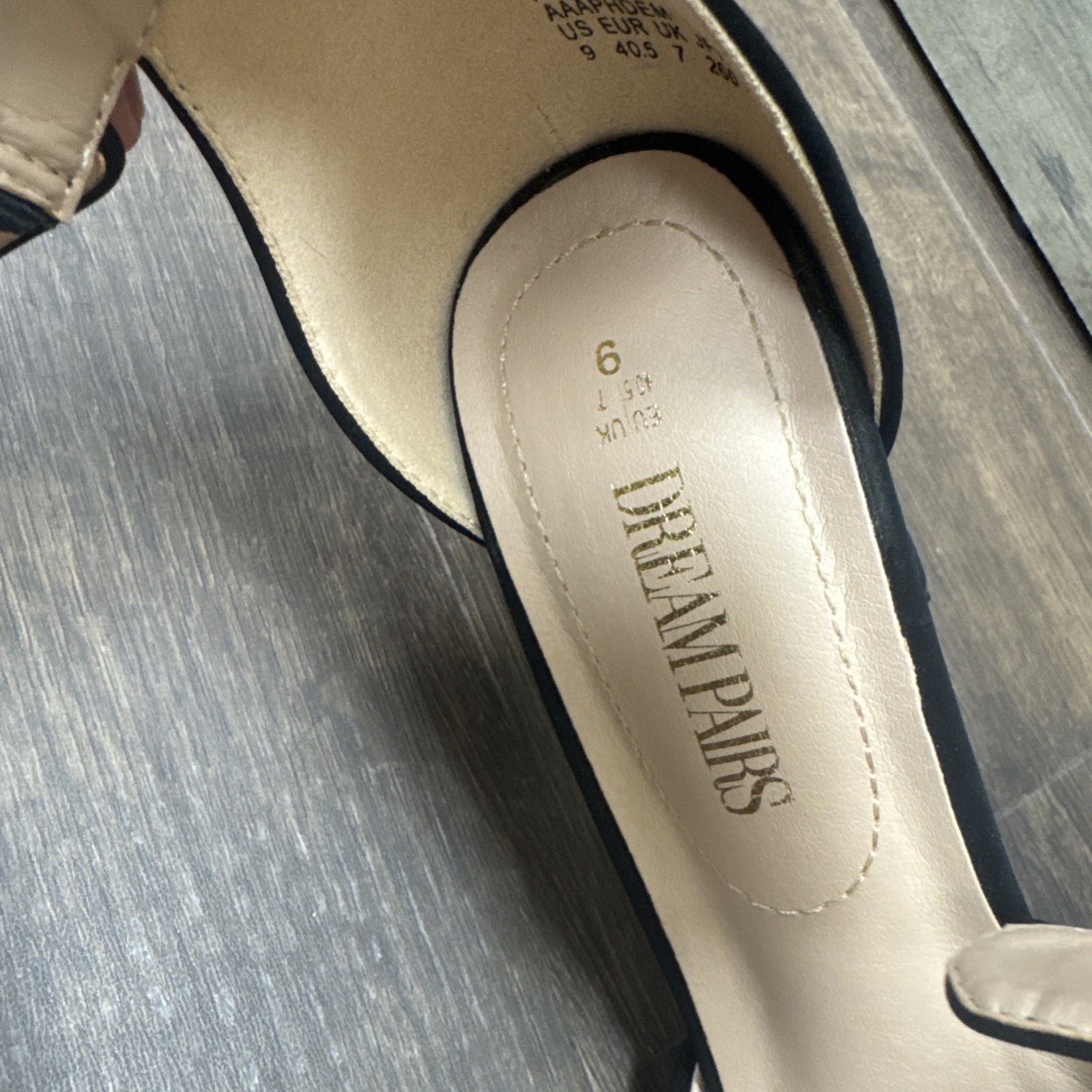 Only worn one time for around 9 hours. No scrapes on the toes. Very sleek nice looking heels. Comes with shoe bags as pictured. No box.