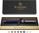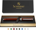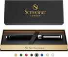 Enjoy the feel of a true luxury pen in your hand – Stunning luxury rollerball pen by Scriveiner. Brass with jet-black lacquer finished in 24 karat gold. Premium quality and understated luxury from a boutique British brand. Transcribe your thoughts effortlessly – We use the Schmidt liquid ink system from Germany which allows your pen to glide smoothly across any type of paper. This combines the ink feel of a fountain pen with the convenience of a ballpoint and gives a superior writing action to gel ink pens. Perfectly weighted and balanced for your writing comfort – this is a luxury pen designed for those who love to write every day. Impress your colleagues and your love ones – The pen comes in a beautiful presentation box making it the perfect gift. Whether as a casual or executive pen, for work, office or personal use, your Scriveiner rollerball will be admired by those around you. Express elegance, sophistication and understated luxury – Scriveiner pens are designed in London, England and share the timeless attributes of classic British design. Buy with total confidence – Incredible customer service and money back guarantee. Our customers are at the heart of everything we do. If you are not satisfied then we will put it right or refund you – whichever you prefer. We know the quality of our products and we want you to have the best possible. A perfect gift – Beautifully boxed and ideal for Father's Day, Mother's Day, Graduation, Christmas, or for a favourite teacher. Or simply as a present to treat yourself! Product Description Winner of King's Award by His Majesty King Charles III (2023) Scriveiner Ballpoint Pen For those moments when smooth precision is key, the Scriveiner Ballpoint is an excellent choice. Scriveiner Rollerball Pen Savour the convenience of a ballpoint with the luxurious feel of a fountain pen with our liquid ink Rollerball pens. Scriveiner Fountain Pen Our beautifully crafted fountain pens, made with German Shmidt nibs are the epitome of luxury pens. For those who are looking for that special unique experience that can only happen with a traditional fountain pen. Scriveiner EDC Pen Range For a luxurious everyday carry pen available in both fountain pen and rollerball, the Scriveiner EDC pens are the epitome of understated sophistication. Designed to fit in your pocket and also be a full size pen with the lid posted. This versatile and perfectly weighted range of pens give a superb writing experience. Scriveiner Ballpoint Scriveiner Rollerball Scriveiner Fountain Pen Scriveiner EDC Range Experience a thrill of pleasure as you enjoy the beauty, quality and understated luxury that a Scriveiner pen delivers with every stroke across the page.