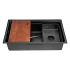 Application It can be suitable for quick use in commercial kitchens, but also widely used in homes, bathrooms, farms, backyards, garages, balconies, laundry rooms, indoor and outdoor, restaurants, bars, hotels, cafes, etc. It can be mounted either way above or below the counter top. Specification Style: Modern Color: Black Shape: Rectangular Drain Type: Grid Material: 304 Stainless Steel and Rubber Surface Treatment: One-piece Stretching Mounting Type: Above or Below the Counter Top Gross Weight: 11kg/24.25lbs Net Weight: 10.3kg/22.71lbs Package Size: 83*56*27cm/32.68*22.05*10.63in Product Size: 75*45*22.35cm/29.5*17.7*8.8 in Package Included 1* Kitchen Sink 1* Chopping Board 2* Hoses 1* Bag 1* Inner Basin Other Accessories for Assembly Black Large Capacity Stainless Steel Drop in Kitchen Sink with Chopping Board Welcome to our store~ Description What if there is not enough space in the kitchen sink? What do you do if the sink is always clogged and can't be cleaned all the time? Then I suggest taking a look at our kitchen sink with excellent material and easy cleaning features, which can easily solve the above problems and help you to create a more tidy kitchen. Key Features Last and Durable: Made of 304 stainless steel with a one-piece stretching process, it is not easy to fade, and can resist wear, corrosion, rust, impact, and deformation, so it can keep beautiful and practical indoors and outdoors . Thoughtful Design: The sloped bottom with a large drainage hole and V-shaped flow line allows water to flow to the drain promptly so that water does not accumulate at the bottom of the basin. In addition, the sound-absorbing rubber mat can effectively reduce the impact of water flow as well as reduce noise. The environmentally-friendly anti-vapour condensation spraying at the bottom prevents dripping and condensation, keeps the sink dry and avoids the deformation of the cabinet by moisture. Kitchen Assistant: Our product comes with a chopping board with a round hole for easy chopping; in addition, the removable inner basin makes it easy for you to clean your veggies, fruits, and more. The inner basin with a drain can be drained directly, which is convenient for you to use. Large Capacity: A large and deep (8.8-inch) sink provides enough space for cleaning, storage, and preparation for your daily use. Space Saving: The compact size (29.5*17.7*8.8 inches) and under-counter installation feature can save your kitchen counter space, creating a more convenient kitchen environment for you. Easy to Clean: Thanks to its smooth surface and simple construction, you can rinse and wipe with water at the same time, thus making it easy to clean. The R-shaped round corner of the basin eliminates the dead corner of dirt accumulation for easy cleaning. Complete Accessories: The combination of sink, hoses, chopping board, etc. can meet your various needs at once and also save you money. Quality Service: We stand behind all our guests and look forward to assisting you with your purchase. It is our pleasure to answer your confusion and questions. The end of the story between us is definitely not "we sell and you buy" Details Practical Hoses: They can help with smoother drainage . Well-designed Overflow Holes: They allow you to say goodbye to water spills and keep your kitchen as clean as possible. Filter Basket and Lid: Filter basket intercepts food scraps for easy disposal and prevents clogging. The lid helps block odors. Double-step Design: It allows you to easily place chopping board and drying rack. Application It can be suitable for quick use in commercial kitchens, but also widely used in homes, bathrooms, farms, backyards, garages, balconies, laundry rooms, indoor and outdoor, restaurants, bars, hotels, cafes, etc. It can be mounted either way above or below the counter top. Specification Style: Modern Color: Black Shape: Rectangular Drain Type: Grid Material: 304 Stainless Steel and Rubber Surface Treatment: One-piece Stretching Mounting Type: Above or Below the Counter Top Gross Weight: 11kg/24.25lbs Net Weight: 10.3kg/22.71lbs Package Size: 83*56*27cm/32.68*22.05*10.63in Product Size: 75*45*22.35cm/ 29.5*17.7*8.8 in Package Included 1* Kitchen Sink 1* Chopping Board 2* Hoses 1* Bag 1* Inner Basin Other Accessories for Assembly Notes Please measure the size of the sink in your home before purchase . Please note that this product does not include a faucet. Please allow the slight color difference caused by the shooting light and 1-3cm error due to manual measurement, and make sure you do not mind before ordering. Payment Delivery details Terms of sales About us Contact us Payment We accept ebay payment 。 Fees such as import duties, taxes are not included in the item price or shipping costs. These charges are the buyer's responsibility. Delivery details Shipping: 2-9 working days to: USA Terms of sales We maintain high standards of excellence and strive for hundred percent customer satisfaction. Feedback is very important to us. We hope that you contact us immediately before you give neutral or negative feedback, so that we can address your concerns. It is impossible to address issues if we do not know about them! About us Your satis faction is our ultimate goal. We work hard to earn your trust and future business. Our certified technicians have tested each item before shipping. The unit comes with 1 year limited warranty on all manufacturing defects. a) If you receive a defective item, you may return it or ask for a discount. Please contact us within 14 days after you receive the package. b) What you returned must be intact and in its original packaging as re? u. Customer is responsible for shipping costs of the returned item. c) We will cover the cost of shipping back t with the shipping rate indicated in the registration page. We will send you a new unit or refund the full payment you paid. Thank you. Contact us Business Hour Business Hour: Monday To Friday: 8:30 AM to 5:00 PM (Beijing China time) 