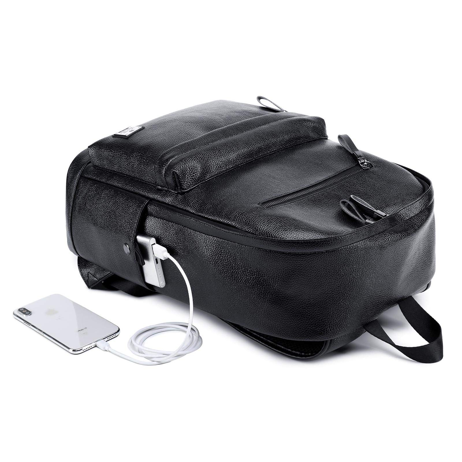 Leather Laptop Backpack for men women, Laptop Leather School Bookbag for Boys Girls College Students, Pu Leather Rucksack Casual Daypack for Work Travel and Everyday Use High Quality Mens Womens Leather Laptop Backpack: Our Unisex Waterproof laptop back pack is made of soft faux leather and smooth zippers with excellent stitching technic. Durable, lightweight and well made. Lots of Pockets: leather backpack with laptop compartment can makes all your daily necessities, school essentials, work essentials and travel accessories well organized and easy to access. Structure: 1 roomy main double zippered pocket with inner pouches for textbook, notebooks, clothes, binders, power bank, and other stuff you need. 1 padded laptop compartment (fit a laptop up to 15.6 inch). 1 front zipper pocket for Ipad, small notebook. 1 smaller front zipper pocket for keys and other small items; 2 side pockets for umbrella and water bottle. Comfortable to Wear: Adjustable, breathable, wide and padded air mesh shoulder straps can release the pressure and provide a more comfortable carry. Great Gift Leather Backpack for Men Women Work Travel College Outdoor and Everyday Use Stylish, sturdy, roomy, and comfortable Perfectly works as a leather laptop backpack, leather work backpack, leather computer backpack, leather college bookbag, middle and high School backpack, leather rucksack, leather travel backpack, college laptop backpack, leather travel backpack, office work backpack, casual daypack