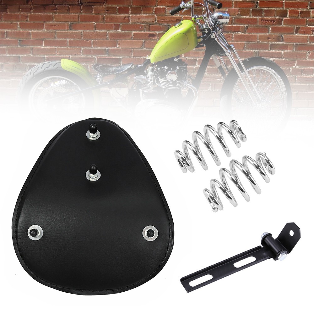 Product Description Solo Seat Black Leather Universal New Motorbike AU Fit For Honda Motorcycles Features: 100% brand new and high quality Heavy-duty steel made of the bracket mounting hardware Black leather and the neoprene foam made of the seat Will fit most of for Harley Honda Yamaha Kawasaki Suzuki Sportster Bobber Chopper and Custom application Specifications: Bracket Material: Heavy-duty Steel mounting hardware Seat Material: Leather+Neoprene Foam Spring Height: 3" (80mm) Seat size: 12.4" x 9.8" (315 x 250mm ) Color: Black Package Included: 1 x Solo Seat 1 x Swivel Bracket 2 x Solo Seat Spring Notes: Due to light and screen difference, the item's color may be slightly different from the pictures. Please allow 1-5mm deviation due to manual measurement. To Buyers International Buyers- Please Note: Import duties, taxes and charges are not included in the item price or shipping charges. These charges are the buyer's responsibility. Please check with your country's customs office to determine what these additional costs will be prior to bidding/buying Attention: When you receive item damaged, defective, not as described or wrong one, please email us pictures within 72 hours to resolve any problem better and faster: 1.All labels with clear words on the package; 2.The real goods you receive; 3.Different angles of the products and package to show the problem clearly. RETURNS: In case the item is defective, please inform us within 30 days of receipt, we will arrange reship or refund. Buyers have to pay for the return cost and we will pay the cost for resend. If you are unsatisfied with our item or service, please contact us before leaving any feedback. We are committed to resolve all issues in a friendly and satisfactory manner. We always reply to messages within 2 business days (off-duty at weekend). If you do not get a response from us, then please check your junk or spam mailbox. To Buyers International Buyers- Please Note: Import duties, taxes and charges are not included in the item price or shipping charges. These charges are the buyer's responsibility. Please check with your country's customs office to determine what these additional costs will be prior to bidding/buying Attention: When you receive item damaged, defective, not as described or wrong one, please email us pictures within 72 hours to resolve any problem better and faster: 1.All labels with clear words on the package; 2.The real goods you receive; 3.Different angles of the products and package to show the problem clearly. RETURNS: In case the item is defective, please inform us within 30 days of receipt, we will arrange reship or refund. Buyers have to pay for the return cost and we will pay the cost for resend. If you are unsatisfied with our item or service, please contact us before leaving any feedback. We are committed to resolve all issues in a friendly and satisfactory manner. We always reply to messages within 2 business days (off-duty at weekend). If you do not get a response from us, then please check your junk or spam mailbox. powered by