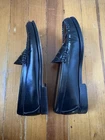 These black leather women's size 9 Weejuns G.H Bass Penny loafers are a stylish and versatile option for casual occasions. The slip-on fit and classic loafers style make them easy to wear, while the leather upper and lining provide comfort and durability. With a solid black color and leather outsole, these loafers are a timeless choice for the summer, fall, and spring seasons.