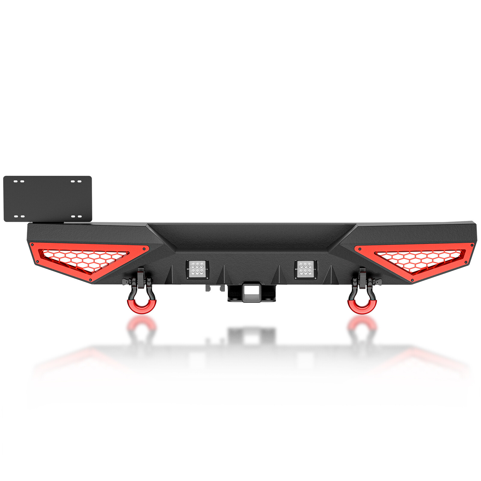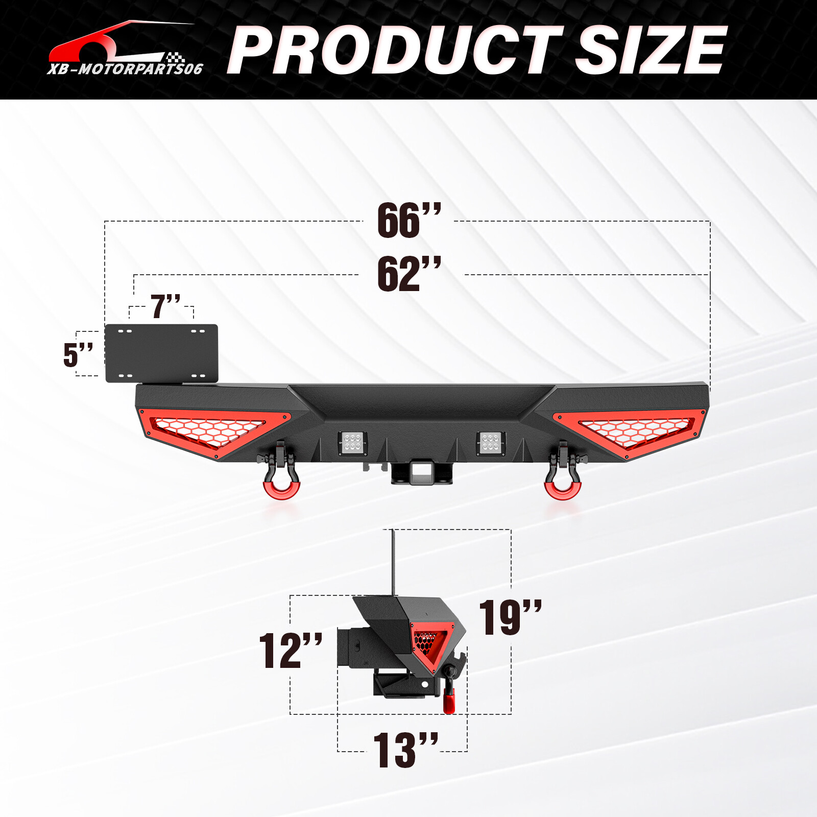 With License Plate Frame Rear Or Front Bumper For 2007-2018 Jeep Wrangler JK JKU Please pay attention to the product options you select: If you choose Front & Rear Bumper,You can get 1 × Front Bumper, 1 × Rear Bumper and Mounting Hardware; If you choose Only Front Bumper,You can get 1 × Front Bumper and Mounting Hardware; If you choose Only Rear Bumper,You can get 1 × Rear Bumper and Mounting Hardware; Suitable Models : Compatible with 2007-2018 Jeep Wrangler JK JKU Unlimited 2/4 Doors Package Includes : ① Front & Rear Bumper option : 1 x Front Bumper, 1 x Rear Bumper, 3 x LED Lights, 4 x D-rings, 2 x License Plate Bracket, 1 x Winch Plate, 2" Hitch Receiver, Paintable Decor, 2 x manual, screw fittings ② Fro nt Bumper option : 1 x Front Bumper, 1 x Winch Plate, 1 x License Plate Bracket, 2 x D-rings, 1 x LED Light, 1 x manual, screw fittings ③ Rear Bumper option : 1 x Rear Bumper, 2 x D-rings, 2 x LED Lights, 2" Hitch Receiver, 1 x manual, License Plate Frame, Paintable Decor, screw fittings Product Information : Package Dimensions : 63.98"D x 21.26"W x 14.17"H Installation mode: Bolt-On With Sensor Holes: No Steel thickness: 3mm Placement on Vehicle: Front/Rear Item Weight: Front Bumper: 72 Pounds; Rear Bumper: 65 Pounds Material: Carbon Steel Color: Black (hand measurements may have an error of 2-3 mm/0.078-0.118 in) Feature : Front bumper : ① Front bumper equipped with a 12,000 lbs winch plate and two 4.75-ton D-rings. Comes with an 312W LED spotlight and two factory-style fog light openings. (Fog lights not provided.) It also comes with a license plate bracket for convenience; ② Robust front bumper crafted from heavy-duty steel for exceptional strength. Textured black powder coating effectively wards off rust, ensuring enduring performance and a lasting sleek look; ③ The package comes complete with all the necessary mounting hardware and user-friendly installation instructions, making it a breeze to securely attach—no need for any drilling; ④ Powder Coated, Durability, Waterproof; Rear Bumper : ① This bumper includes 4.75-ton capacity D-rings (rated at 9500 lbs.), 2X upgraded LED lights for illumination, Universal License Plate Bracket and a standard 2" receiver hitch. It offers customizable detachable decor to match your vehicle; ② High-strength steel, durable rear bumper. Textured black powder coating resists rust for long-lasting performance and appearance; ③ The package comprises mounting hardware and user-friendly installation instructions for a straightforward bolt-on installation—no drilling needed; ④ Durability, Waterproof, Rust-proof; Warranty Period :2 year Standard Shipping (FedEx Ground or FedEx Home Delivery) Will usually ship within 3 business days of receiving cleared payment Please pay attention to the product options you select: If you choose Front & Rear Bumper,You can get 1 × Front Bumper, 1 × Rear Bumper and Mounting Hardware; If you choose Only Front Bumper,You can get 1 × Front Bumper and Mounting Hardware; If you choose Only Rear Bumper,You can get 1 × Rear Bumper and Mounting Hardware; Suitable Models : Compatible with 2007-2018 Jeep Wrangler JK JKU Unlimited 2/4 Doors Package Includes : ① Front & Rear Bumper option : 1 x Front Bumper, 1 x Rear Bumper, 3 x LED Lights, 4 x D-rings, 2 x License Plate Bracket, 1 x Winch Plate, 2" Hitch Receiver, Paintable Decor, 2 x manual, screw fittings ② Fro nt Bumper option : 1 x Front Bumper, 1 x Winch Plate, 1 x License Plate Bracket, 2 x D-rings, 1 x LED Light, 1 x manual, screw fittings ③ Rear Bumper option : 1 x Rear Bumper, 2 x D-rings, 2 x LED Lights, 2" Hitch Receiver, 1 x manual, License Plate Frame, Paintable Decor, screw fittings Product Information : Package Dimensions : 63.98"D x 21.26"W x 14.17"H Installation mode: Bolt-On With Sensor Holes: No Steel thickness: 3mm Placement on Vehicle: Front/Rear Item Weight: Front Bumper: 72 Pounds; Rear Bumper: 65 Pounds Material: Carbon Steel Color: Black (hand measurements may have an error of 2-3 mm/0.078-0.118 in) Feature : Front bumper : ① Front bumper equipped with a 12,000 lbs winch plate and two 4.75-ton D-rings. Comes with an 312W LED spotlight and two factory-style fog light openings. (Fog lights not provided.) It also comes with a license plate bracket for convenience; ② Robust front bumper crafted from heavy-duty steel for exceptional strength. Textured black powder coating effectively wards off rust, ensuring enduring performance and a lasting sleek look; ③ The package comes complete with all the necessary mounting hardware and user-friendly installation instructions, making it a breeze to securely attach—no need for any drilling; ④ Powder Coated, Durability, Waterproof; Rear Bumper : ① This bumper includes 4.75-ton capacity D-rings (rated at 9500 lbs.), 2X upgraded LED lights for illumination, Universal License Plate Bracket and a standard 2" receiver hitch. It offers customizable detachable decor to match your vehicle; ② High-strength steel, durable rear bumper. Textured black powder coating resists rust for long-lasting performance and appearance; ③ The package comprises mounting hardware and user-friendly installation instructions for a straightforward bolt-on installation—no drilling needed; ④ Durability, Waterproof, Rust-proof; Warranty Period :2 year