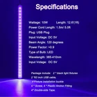 Product Name: UV Black Light Bar for Glow in the Dark Finish Type: Plastic Base Material: Plastic Item Weight: 82 Grams Lamp Type: Black Light Shade Color: Purple Key Features & Benefits: UV Black Light for Glow in the Dark: The light emits UV-A level light (385-410nm), which is harmless to the human body . When exposed to this UV light, fluorescent effects become visible, making it ideal for glowing in the dark effects. The 10W black light bar is upgraded with high-quality LEDs and provides a 120-degree wide beam angle for better coverage. It has a long 25,000 hours service life , ensuring durability and long-term use. The design has been improved to be thinner and lighter , offering more flexibility and ease of use. Easy to Install: The light fixture can be installed in several ways: wall mount , under-counter , or cabinet clip install , as well as wall screw installation . It can be mounted on T-bars , walls, or even the floor. It comes with an ON/OFF switch for easy control, and a 63-inch power cord offers flexibility in placement. Plug and Play: The black light operates on a DC 5V USB power supply , making it compatible with a wide range of devices like power banks , USB adapters , computers , and laptops . Simply plug it in, and it’s ready to use. Wide Application: This UV light is perfect for curio displays , cabinet lighting , artwork displays , tapestries , glow-in-the-dark parties , and special events like Christmas , Halloween , and birthday parties . It is also suitable for bedroom posters , body paint , and enhancing the visibility of fluorescent materials . Package Includes: The package contains 2 black light fixtures , 2 USB cables (63 inches each) , 4 fixture installation buckles , 4 screws , 4 plastic anchor fittings , and 4 pieces of double-sided tape . This ensures you have everything needed for installation. A 12-month risk-free warranty is included, providing peace of mind for your purchase. If you encounter any issues or missing pieces, the company offers responsive after-sales service .
