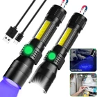 Super Bright LED Flashlight, 7modes, One key Turn Off ------ High Lumen LED Flashlight delivering a outstanding 2000-Lumen and up to 600feet Strong Illumination; This LED tactical flashlight can be turned off at any of 7modes via long press the button 2S, no need cycle through all 7 modes: high/low /strobe/UV blacklight/COB white/COB red/COB Flash light. 395nm UV Flashlight ------Flashlight is a combination of white, red and purple light.Black light Flashlight, provide professional 395nm wavelength UV light can be perfectly used as pet urine stains Detection, UV Cure light, kitchen floor carpet bathroom stains; black light detector authenticate currency, driver license, passports; this ultraviolet flashlight also do a great job in scorpions detecting during your camping night. Best LED blue light flashlight choice as a mutimode flashlight. USB Rechargeable Flashlight, Long Lasting----- Tactical Flashlight rechargeable,USB cable included, This Rechargeable UV Flashlight only need 3hours to get full charged and reach up to 10hours (Low mode) working time. the flashlight all designed with overcharge protection function, which mean this rechargeable flashlight will stop charging when it fully charged. No worry about safety issue. Magnetic Flashlight, COB work flashlight, Hand free ------ LED Flashlight magnetic, Features a strong magnetic base in this blacklight flashlight bottom ensure you can attach this Rechargeable flashlight to metal surfaces for hands-free use; Magnetic COB work flashlight with black light, red light and white light , Best combination as a tactical flashlight. Zoomable, Waterproof, Practical ------ This UV Flashlight design with adjustable focus, Fully zoomable from Floodlight to Spotlight; IPX6 Waterproof and Sturdy whole aluminum body ensure this black LED flashlight can be used in bad weather environments; 5inch in length and 4.3onces in weight, UV black flashlight with pocket clips, this small rechargeable flashlight is lightweight and compact as a camping flashlight or a EDC flashlight. Product Description Why Choose Hoxida UV Rechargeable Flashlight : 1. 3in1 flashlight : Compared to most flashlight, Hoxida flashlight combine 3 color lighting in one flashlight, White/UV/Red. you can pay one flashlight money to get three flash lights.******395NM UV lights/Black light used for easier spot carpet pet urine stains, find fluorescent in baby clothes, authenticate currency, driver license, passports. ******White Bright Light for daily and work purposes *****flashlight with red light make this tactical flashlight is great for Camping, Emergency and outdoor use. 2. magnetic flashlight &COB sidelight :LED Flashlight, has Strong magnet at the bottom on this black led flahlight and combine a COB sidelight , let your hands totally,perfect LED Tactical Flashlight. 3. USB Rechargeable :a usb cable included, you could charge this rechargeable flashlight via any USB device 4. 7 Lighting Modes &Zoomable :flash lights, 7 lighting modes: high / low / strobe / UV light / COB white light / COB red light / COB side strobe light mode, easily ajust focus by stretching flashlight body get wide to narrow beam . 5. Waterproof : IPX6 waterproof ensure its safety when you use this waterproof flashlight in rainy day 6. Lightweight and compact :Rechargeable flashlight pocket size, only 4.59inch in length and 4.3once in weight, easily put in your pocket ,or wear it on your belt(with a pocket clip),a wonderful EDC flashlight. 7. One-Step directly off function : led flashlight, One-Step directly turn off by long press for 2 secs, no need to cycle all mode 8. Super bright and long burn time: High grade LED provide 2000lm and 8hours constant lighting in low brightness mode. 3in1 LED Flashlight Hoxida flashlight combine 3 color lighting in one flashlight; 395NM UV Black light /White Bright Light for daily and work purposes /flashlight with red light make this tactical flashlight is great for Camping, Emergency and outdoor use. USB Rechargeable * 10hours long standby * USB Cable included, this rechargeable flashlight is charged via any USB port ,3 hours fast charging * Charging indicate light , red is mean in charging , and green is mean full charging. Small LED Flashlight Small LED Flashlight, Only 5.5"in length and 5onces in weight .With belt-clip, easily put in pocket, perfect Flashlight for camping, walking dogs, daily and emergency use COB Sidelight COB sidelight provide a larger illumination for more lighting needs . can be a powerful lighting for Power outage, also can be a work flashlight for large area lighting at night repairing, also can be a desklamp for reading. Flashlight with Magnetic base led Magnetic Flashlight, has Strong magnet at the bottom and combine a COB sidelight ,really a smart operation when you want fix some stuff at night or outside camping, let your hands totally,perfect LED Tactical Flashlight. IPX6 Waterproof Waterproof flashlight, design for rainy day, you could you could use it in rainy day . Zoomable Flashlight-Adjustable Focus Zoomable Flashlight, simple stretching lamp head to adjust the focusing light And floodlights,meet your various lighting needs Package included 2pcs Rechargeable LED Flashlights 2pcs Micro USB charging cables 1pcs user manual Specification Product name :UV rechargeable flashlight Material: High-Strength Anodized Aluminum Alloy 2. Light Source :1* High Light LED/ 1* Blacklight LED 3. Brightness: 2000 Lumens 4. LED Lifespan: 100,000 hours 5. 7 Modes: Full, Low, Strobe, UV, White COB, Red COB,RED White SOS Mode 6. Size: Length 5.5 inch 7. Zoomable(Telescopic zoom in and out