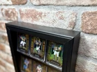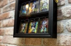 Display your trading card collectibles in this sleek black wooden case. The case will hold 9 cards of your choosing. The case is lockable to protect you valuable cards while displaying them. Inside of the case there is 3 shelves that hold 3 cards on each. NOTE: Cards inside case are not included with purchase. For display purposes only. ALSO, graded cards would not fit in this case.