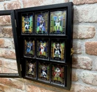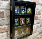 Black Lockable Wooden Trading Card Display Case Holds 9 Wall Mount Swing Open