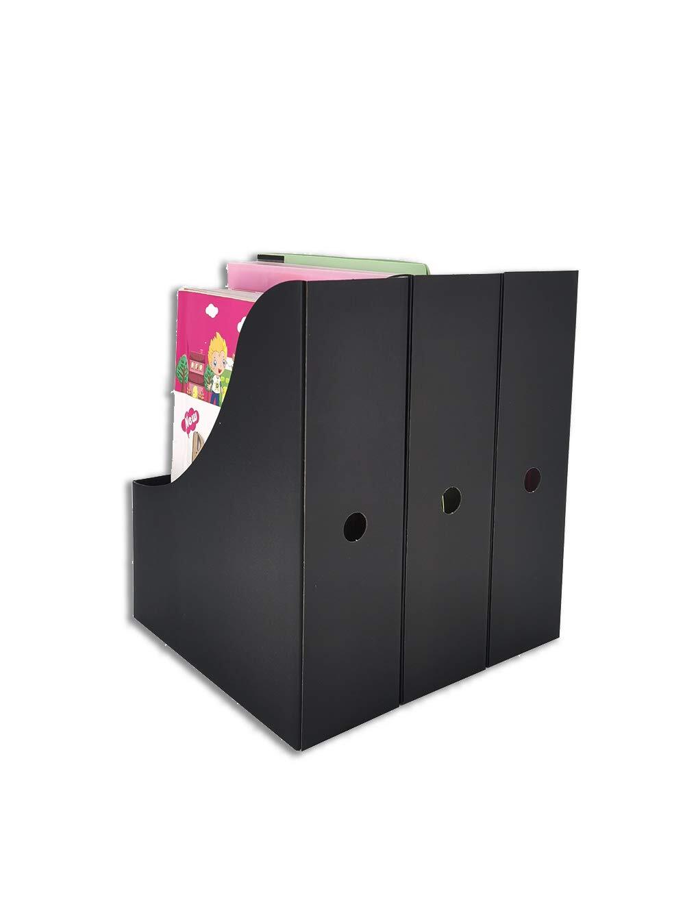 Practical Standing File Organizer,Paper Organizers,File Folders & Accessories Holder and Storage for Home,Office: The paper organizer box can be used to store items such as A4 and letter-sized documents, catalogs, magazines, reports, school papers, for school dormitory, office, home files storage. Our desktop file holders are made of very strong paper and the structure is engineered to hold 10lb of weight. For instance, our magazine storage box hold 24-28 scientific American magazines .Notebooks depend on the width of the spine but generally 4-6 notebook. Product Features: Color: Black Material: Corrugated Cardboard File Holder Size: 9.85”(H) x12.25”(D)x 3.54”(W) Labels Size: 2.76” wide x 1.58” high Package Includes: 12pcs file holders 12pcs self-adhesive labels One “how to assemble” instruction paper Assemble in Seconds: Paper holders flatten for compact storage, assemble in seconds. Seamless spine, convenient front and back finger grips give the file holder organizer a rustic yet professional look. Practical Paper Holder Organizer: The Cardboard magazine file boxes can be used to store items such as A4 and letter-sized documents, catalogs, magazines, reports, school papers, for school dormitory, office, home files storage. Sturdy Cardboard: The upright file organizer is made of 130g corrugated cardboard. The sturdy magazine box won’t easily tear or tip. The file holders are fully recyclable,reusable and practical. Perfect Size: Set of 12 Packs, Color : Black, Size: 9.85" L x 12.25"H x 3.54" W, self-adhesive labels included Money Back Guarantee: We are confident you would love our file folder holder in its quality and price. However, if there's anything make you unhappy please do contact us without any hesitation. A replacement or 100% refund will be immediately provided to you.