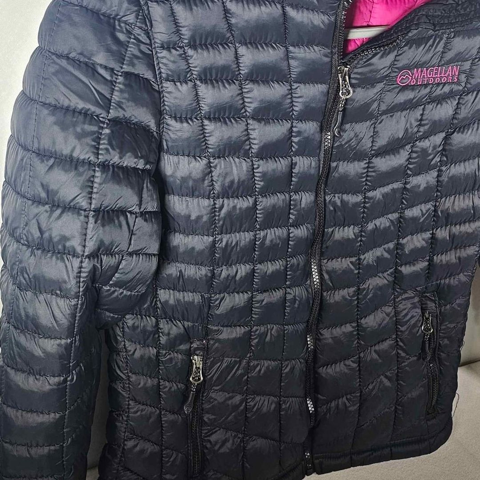 Stay warm and stylish with this black puffer jacket from Magellan Outdoors. Made with a cotton blend outer shell and polyester insulation material, this mid-length jacket is perfect for all seasons, including winter, summer, fall, and spring. The jacket features a 1/2 zip closure and pockets, making it a great choice for casual occasions. The logo accents add a touch of bohemian and outdoor vibes to the classic style. This women's jacket is machine washable and comes in size medium. The fleece fabric type and polyester lining material make it comfortable to wear. Whether you're going on a hike or running errands, this jacket is a versatile addition to your wardrobe. Get yours now and stay warm and fashionable all year long!