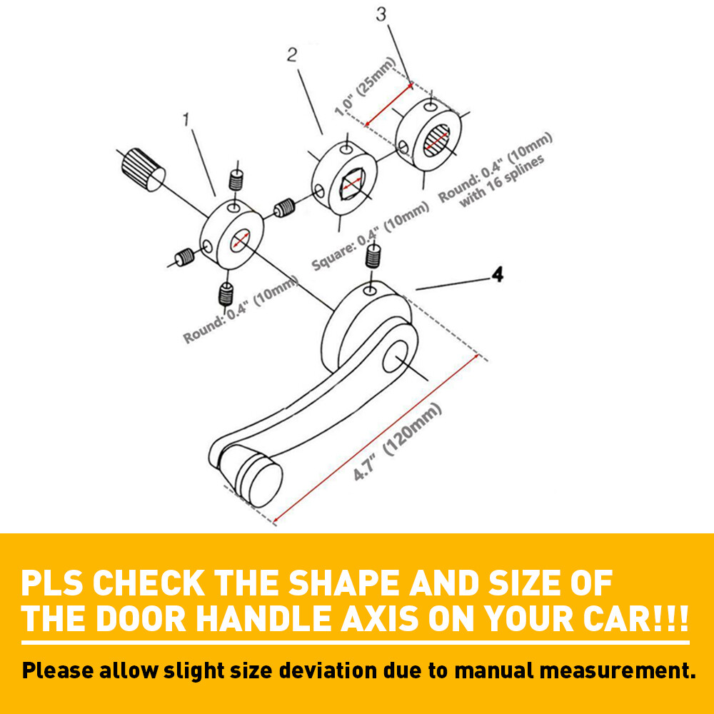 Fit for: Universal fit most vehicles with door handle axis size:0.4" round or 0.4" square or 0.4" round with 16 splines Minor modification may be required for some models Specifications: Color: black Material: superior aluminum Fitment type: direct replacement Features: *Superior Material Made of excellent aluminum with bright color to extend its long service life and durability. *Upgrading Upgrade the car interior to enhance its sense of beauty. *High-quality Our product with wear and corrosion resistance provides a better shopping experience for our customer. *Wide application Black Window Winder Crank Car Manual Door Handle for Honda axis size 0.4" Round Fit for: Universal fit most vehicles with door handle axis size:0.4" round or 0.4" square or 0.4" round with 16 splines Minor modification may be required for some models Specifications: Color: black Material: superior aluminum Fitment type: direct replacement Features: *Superior Material Made of excellent aluminum with bright color to extend its long service life and durability. *Upgrading Upgrade the car interior to enhance its sense of beauty. *High-quality Our product with wear and corrosion resistance provides a better shopping experience for our customer. *Wide application Equipped with 3 different adaptors to fit various car models,which can be replaced directly. *Minor modification may be required for some models. Packaging include: Window winders*2 1/2 in round fix ring*2 3/8 in square fix ring*2 7/16 in round with 16 splines fix ring*2 Allen key*1 screws*1 Item Specifics Brand AUXITO Performance Part Yes Manufacturer Warranty 2 Years Brand unbrand Color Black Fitment 4-Door 2-Door Coupe Pickup Sedan SUV Vehicle Fitment Type Direct Replacement Manufacturer Part Number Does Not Apply Material Alunimum Number of Pieces 2 Other Part Number A04-001 Easy Installation Winders Manual Door Set Placement on Vehicle Front, Left, Rear, Right Size as the pisture Finish NEW Size as the pisture Finish NEW Payment We can accept payment by credit, debit, and gift cards; Apple Pay, Google Pay, PayPal, and PayPal Credit. Shipping 1. All items will be shipped in 24 hours after receiving your payment . 2. We ship this item to US only via USPS first class mail. It usually takes 3-5 working days to deliver. Returns 1. We offer 60 days return policy. 2. Please contact us within 60 days from the date you receive your package if you have any questions with the products . 3. Refund will be sent after we got your returned package. 4. All returned items should be in the original packaging with tracking number. Contact Us We work from Monday - Saturday 9:00AM - 6:00PM PST, but we will reply you once we get your message .There will be some delay on response if you send message or E-Mail on Sunday. DESCRIPTION PAYMENT SHIPPING RETURN POLICY CONTACT US Hot item Help & Info Payment Policy Shipping Policy Return Policy FAQ About Us Black Window Winder Crank Car Manual Door Handle for Honda axis size 0.4" Round Fit for: Universal fit most vehicles with door handle axis size:0.4" round or 0.4" square or 0.4" round with 16 splines Minor modification may be required for some models Specifications: Color: black Material: superior aluminum Fitment type: direct replacement Features: *Superior Material Made of excellent aluminum with bright color to extend its long service life and durability. *Upgrading Upgrade the car interior to enhance its sense of beauty. *High-quality Our product with wear and corrosion resistance provides a better shopping experience for our customer. *Wide application Equipped with 3 different adaptors to fit various car models,which can be replaced directly. *Minor modification may be required for some models. Packaging include: Window winders*2 1/2 in round fix ring*2 3/8 in square fix ring*2 7/16 in round with 16 splines fix ring*2 Allen key*1 screws*1 Payment Shipping Returns Contact Us We can accept payment by credit, debit, and gift cards; Apple Pay, Google Pay, PayPal, and PayPal Credit. 1. All items will be shipped in 24 hours after receiving your payment . 2. We ship this item to US only via USPS first class mail. It usually takes 3-5 working days to deliver. 1. We offer 60 days return policy. 2. Please contact us within 60 days from the date you receive your package if you have any questions with the products . 3. Refund will be sent after we got your returned package. 4. All returned items should be in the original packaging with tracking number. We work from Monday - Saturday 9:00AM - 6:00PM PST, but we will reply you once we get your message .There will be some delay on response if you send message or E-Mail on Sunday. All rights reserved. On May 31, 2025 at 12:05:53 PDT, seller added the following information: