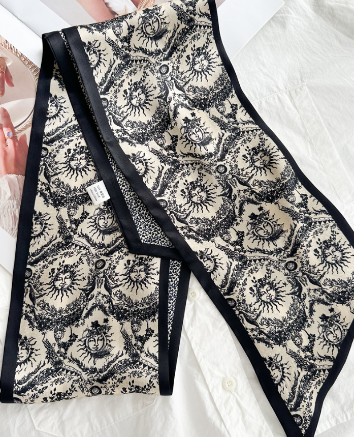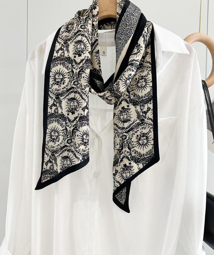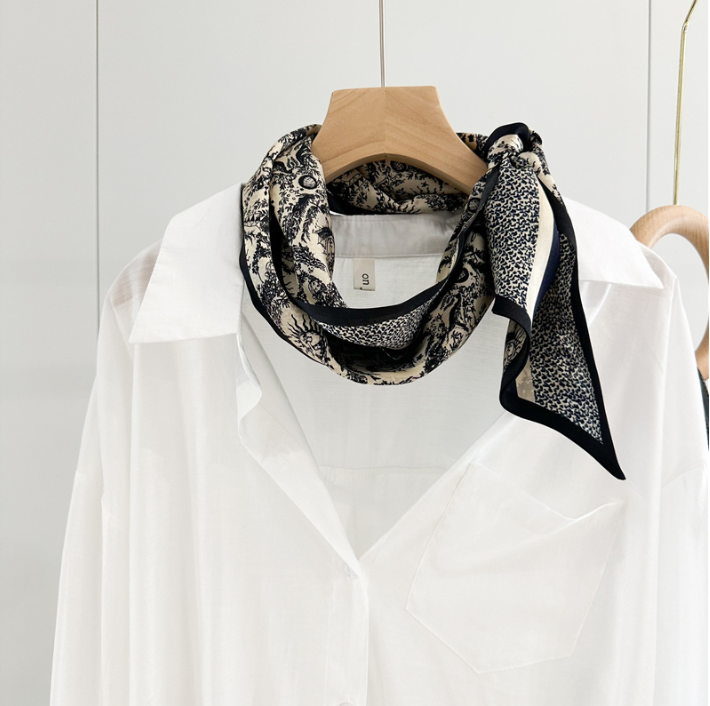 Versatile neckerchief print for adding some elegance and detail to a dark blouse or shirt. Quality jacquard twill with a great feel. Packaged well, great price, arrived quickly for overseas. Very good seller.