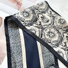 $ 10.56100% Silk Mulberry Scarf 150x16cm Black Petals Print Women's Wrap Neckerchief
