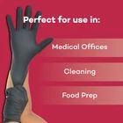 Slip into sanitary safety with these black, small disposable gloves. Whether you’re performing routine checkups, stocking up the classroom, or prepping a tattoo shop, these disposable medical grade gloves from do wonders. Constructed of safe nitrile material with flexible beaded cuffs, our gloves deliver the dependable grip, rugged durability, and soft comfort you need to last the workday. Patients and wearers benefit from our powder and latex-free hypoallergenic material, while operators enjoy bulk packaging and easy accessibility with our handy dispenser boxes. Pick up a few cases of these 100 count disposable nitrile gloves to prepare your personnel for any task including home healthcare visits, housekeeping, medication dispensing, food manufacturing, hair and beauty services, and more. At , we work hand in glove with businesses to provide the highest quality supplies at the most affordable prices. Add a box of Nitrile Medical Grade Exam Gloves to your cart today! Powder Free Black Nitrile Exam Gloves: Providing more protection and eliminating allergies associated with latex gloves, these pull-on closure black nitrile gloves are expertly crafted out of nitrile material to provide optimal protection and comfort. They are both unisex and ambidextrous for a wide variety of fits. Optimal Comfort: nitrile gloves are designed with a highly elastic fit and beaded cuffs to provide a snug, secure fit when wearing for extended periods of time. Additionally, they offer tactile sensitivity for delicate patient care. They can be used by emergency personnel, food craft services, home care, vets, dental associates, lab techs, medical staff, and more. Utmost Protection: The ambidextrous and disposable exam gloves are non-allergenic and non-irritating making them perfect for people with sensitive skin and those who are prone to allergic reactions. They are durable enough to protect against liquids and debris. These versatile nitrile gloves are strong while still giving you the dexterity and control you need for finer needles or equipment. Multi-Purpose Nitrile Gloves: Bulk nitrile gloves are ideal for dispensing medication, non-invasive physical examinations, lab work, hair coloring, tattooing, grocery shopping, painting, cleaning, pet care, home improvements, hobbies, and arts & crafts. These ambidextrous unisex exam gloves can be worn on either the right or left hand, and fit both men and women equally. Efficient Packaging: Soft-Fill Technology dispenses the medical examination gloves with unwrinkled ease because they are packaged flat. This allows for more efficient and expedient use when you need to grab a pair of sanitary disposable gloves. They are packaged in compact, stackable boxes, that make them easy to store.