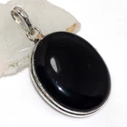 Black Onyx 925 Silver Plated Gemstone Handmade Pendant 1.7" Women Gifts JW
