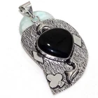 Black Onyx 925 Silver Plated Gemstone Handmde Pendant 2.6" Valentine Gifts JW