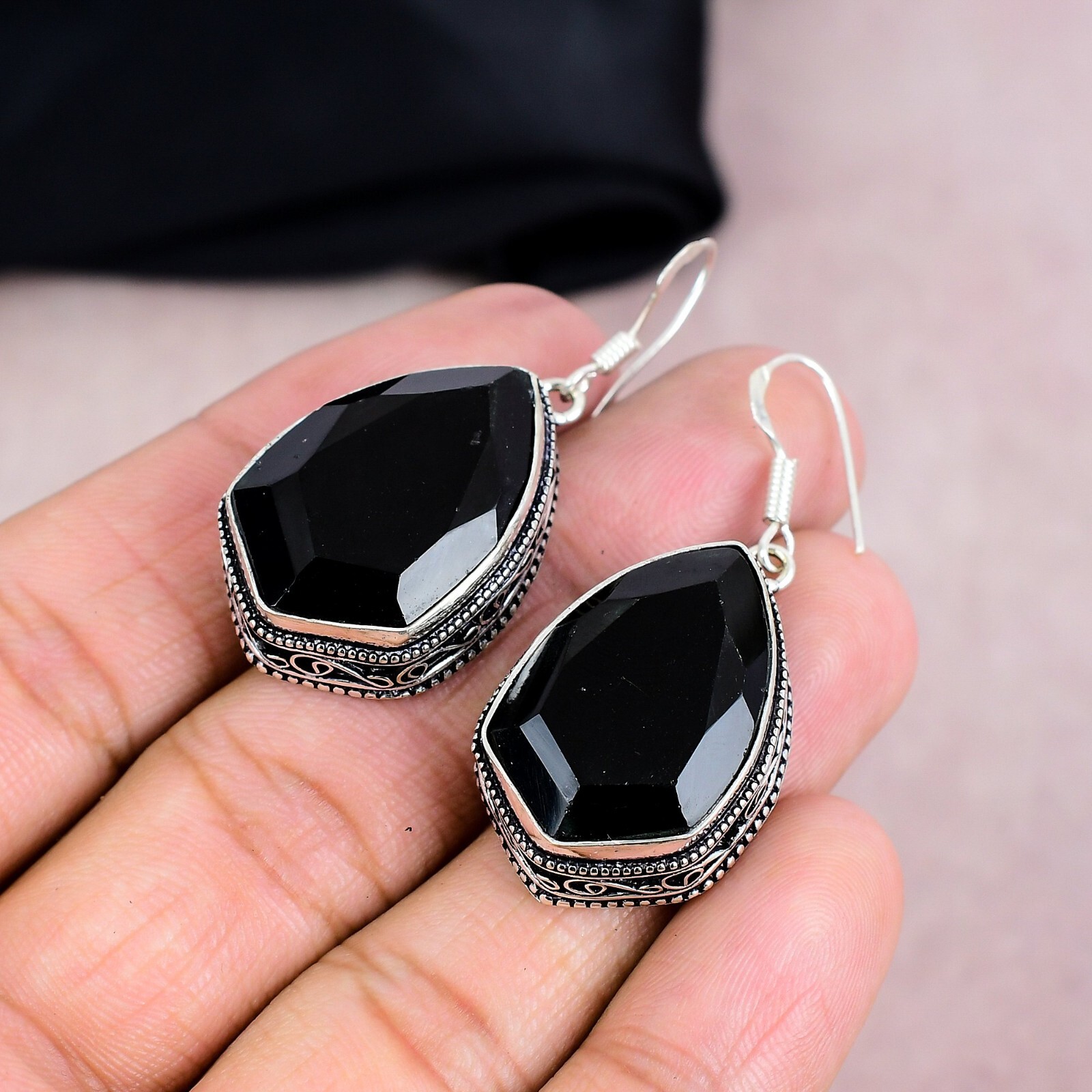 Metal Purity:925Material:Stone, GemstoneTotal Carat Weight:10 carat and aboveBase Metal:Sterling SilverCertification:N/AMain Stone Shape:Same As PictureCountry of Origin:IndiaColor:SilverColored Diamond Intensity:N/AItem Length:5 CmDiamond Color Grade:N/ADiamond Clarity Grade:N/AOccasion:Anniversary, Birthday, Christmas, Engagement, Father's Day, Mother's Day, Valentine's Day, WeddingTheme:Beauty, Bohemian, Ethnic, Halloween, LoveBrand:HandmadeMain Stone Color:BlackShape:N/AMetal:Sterling SilverCountry/Region of Manufacture:IndiaType:EarringsEar Area:LobeSecondary Stone:N/ASetting Style:BezelClosure:HookMain Stone Treatment:Not EnhancedMain Stone:Black OnyxCollection:HandmadeNumber of Diamonds:N/AMain Stone Creation:NaturalStyle:Dangle/DropNumber of Gemstones:2Cut Grade:Excellent