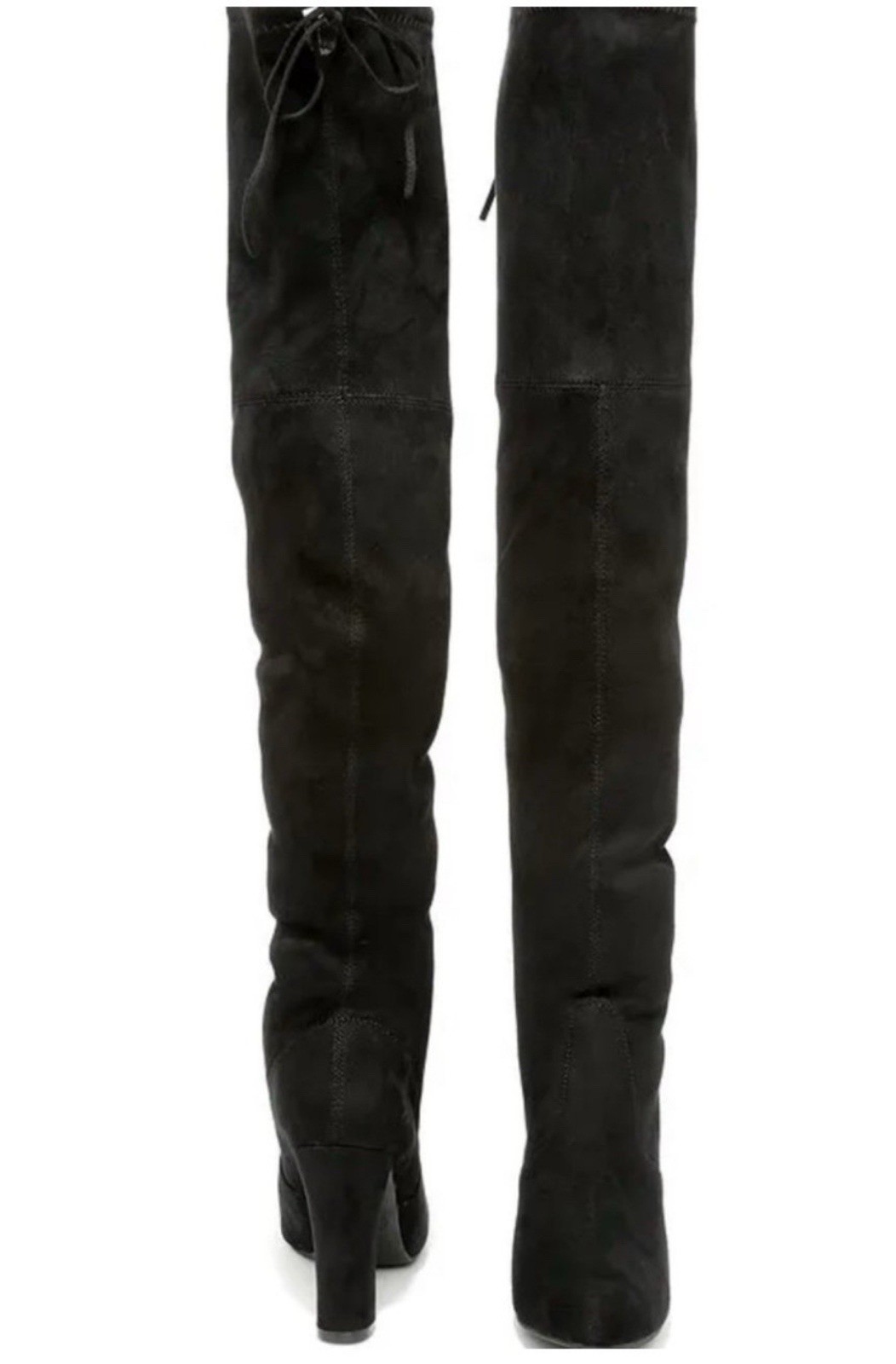 The Black Over-the-Knee Steve Madden Boots in size 8 for women are a stylish and versatile choice for various occasions. Made from suede with a block heel, these boots offer comfort and durability. With a solid black color, these boots can be worn for parties, cocktails, or casual outings during the winter, fall, or spring seasons. The brand's signature style and quality construction make these boots a trendy and practical addition to any wardrobe.