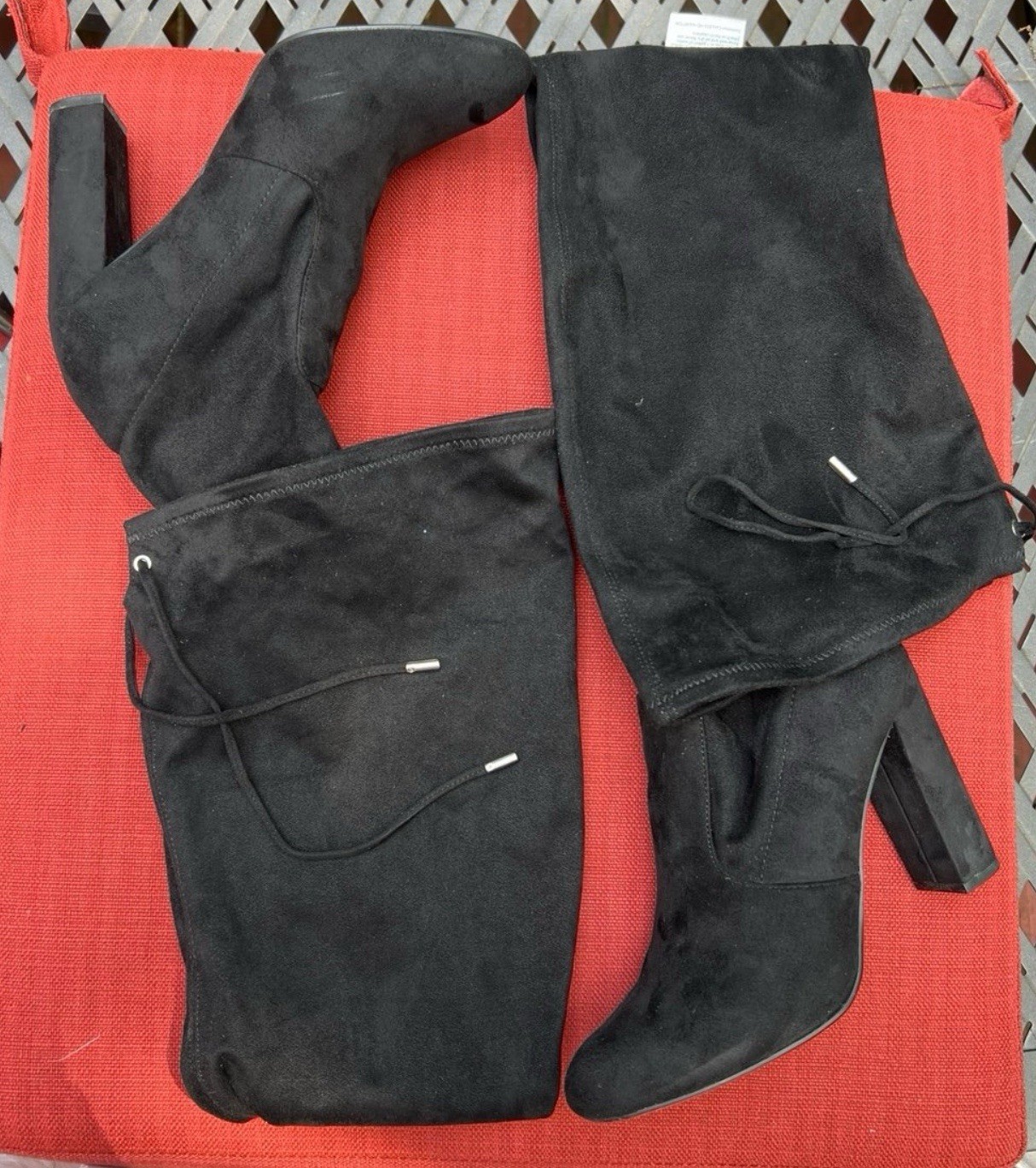 $ 91.35NIB Saint Laurent Cutout Suede Knee High Boots In Black Suede Size: 39 (US 9)