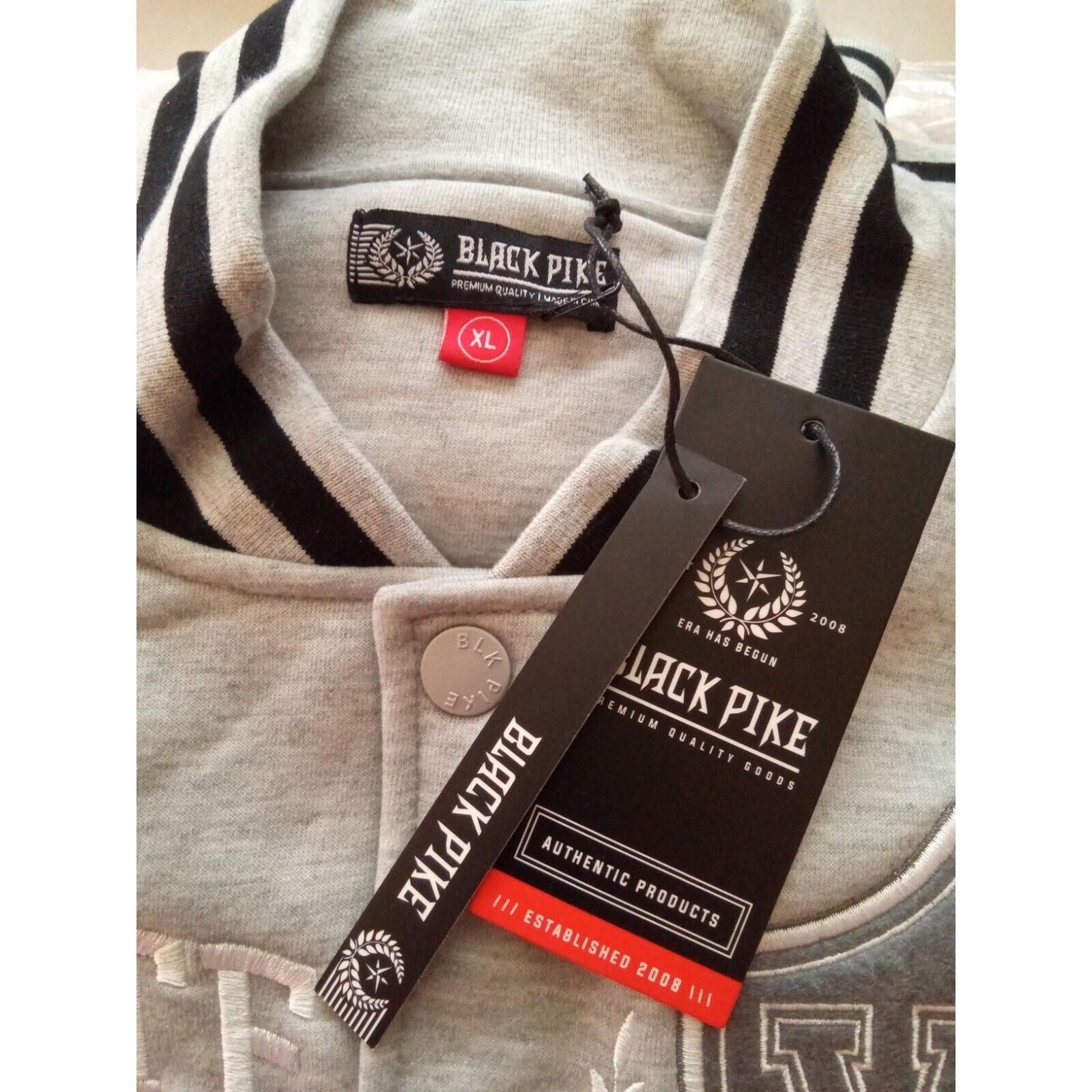 NWT. Black Pike State Champs Varsity Jacket Grey. Show off your varsity spirit with this Black Pike State Champs Varsity Jacket in Grey. This jacket features a classic button closure and elastic waist for a comfortable fit. It's made with high-quality polyester material for durability and lined with cozy fleece for warmth. The jacket comes with pockets for your convenience, making it perfect for travel and casual wear. This jacket comes in size XL, with a regular fit that suits most body types. Its gray color adds a touch of sophistication, making it perfect for any occasion. The jacket is designed with a collared neckline and is suitable for fall, winter, and spring seasons. Get ready to cheer on your team in style with this Varsity Jacket. Measurements: 25 inches pit to pit, Length 28 inches. F5 BOX - 170 (XL)