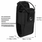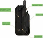 Specifica tions: Material: N ylon Weight: About 60g Size: 6.5*5*15CM Color: Black Feature: -Made of 1000D high-quality waterproof nylon material. It is strong, durable, wear-resistant and tear-resistant. -Small size and lightweight. Easy to carry and store. -Designed with Molle system, can be attached to backpack, vest, belt and other molle gears. -The size of the bag is adjusted by elastic band, which can firmly fix the items, and is easy to open and close the bag. -Multifunctional design, which can be used for camping, hiking, hunting, mountain climbing, fishing or other outdoor activities. -It makes your hands at ease, safe and convenient, and it can hold small devices such as phones, GPS, walkie-talkies and portable radios,EDC tools -Fit for outdoor sports, police, firefighters, security guards, first responders and other 8-person suits. Package Included: 1 x Walkie Talkie Pouch