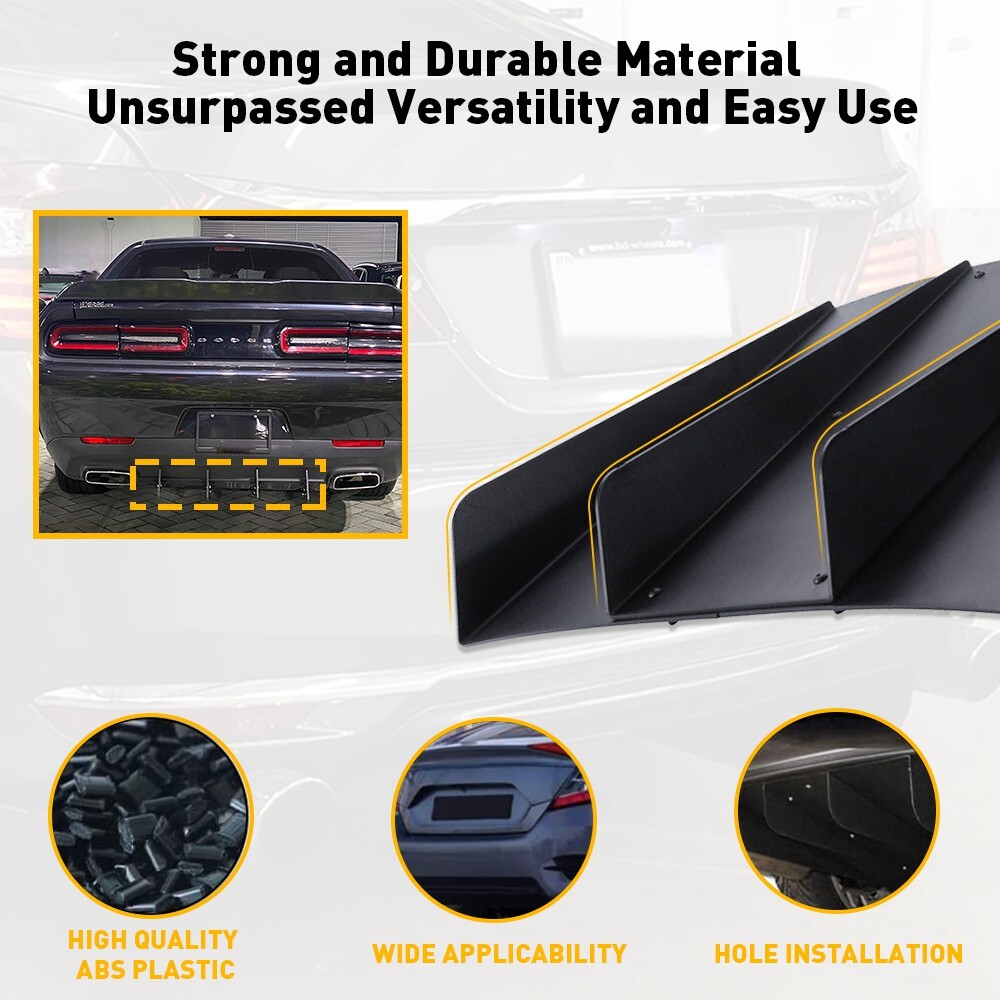 Specifications: Product size: 55*48.5cm/21.7*19.1in Product color: Black Product material: Polyurethane Placement on Vehicle: Rear Suitable model: universal 1.【Reduce Air Resistance】:This shark fin diffuser designed to increase a vehicle's aerodynamic performance and improve the stability of vehicle during fast driving. 2.【Excellent Appearance】:Shark fin and clean lines design with beautiful appearance to decorate your car,which gives your vehicle a more aggressive racing look. 3.【ABS Material】 :Made of ABS material with high-qulaity, waterproof, durable functions and will not easy to break. Car Trim Diffuser Rear Kit 4 Fins Splitter Bumper Chin Spoiler Lower Lip Black O Specifications: Product size: 55*48.5cm/21.7*19.1in Product color: Black Product material: Polyurethane Placement on Vehicle: Rear Suitable model: universal 1. 【Reduce Air Resistance】 :This shark fin diffuser designed to increase a vehicle's aerodynamic performance and improve the stability of vehicle during fast driving. 2. 【Excellent Appearance】 :Shark fin and clean lines design with beautiful appearance to decorate your car,which gives your vehicle a more aggressive racing look. 3. 【ABS Material】 :Made of ABS material with high-qulaity, waterproof, durable functions and will not easy to break. 4. 【Universal Fit】 :Universal fit for most cars , please measure the size before purchasing. Note: Please confirm the size and make sure that there is enough space to install before purchasing!!! Professional installtion is requred. Packaging include: 1x Rear Bumper 4 Fins Diffuser 6x Screws Item Specifics Country/Region of Manufacture United States Attachment Method Bolts Screws Warranty 1 Year Fitment Type Performance/Custom Surface Finish ABS Type Rear Bumper Diffuser 4 Fin Color Black Material Polyurethane Placement on Vehicle Lower Rear Manufacturer Part Number Does Not Apply Brand PeakParts Features Array Dimension Approx 22" x 19" (Check image for detail) Fitment Universal fit on Under Rear bumper Installation Not Included-Modification may be required to fit properly. Item Compatibilities Reference only OE Spec or Performance/Custom Performance/Custom Package Including Rear Bumper Diffuser Fin and Screws Custom Bundle Yes Number of Pieces 1 Number of Pieces 1 FAQ ♥ If you have a decoding problem or any other problems, please contact us first, we will help you with it. We will reply you within 24 hours in working days. I'm a new seller, thanks a lot for your trust and convince! I will serve you with all my heart. ♥ Q1: Will this bulb fit my vehicle? A: We can match almost any vehicle to one of our bulb sizes. eBay only lets us include some vehicle fitments per listing, but if your vehicle does not show up on the compatibility table at the top of our listings, welcome you to contact us for free consulation before purchasing a product. Q2: My item has not arrived, what's taking so long? A: Sometimes items take longer than expected, especially if it’s going far or to rural area. Check with your post office to see if your item has been held up. Sometimes Royal Mail will not update a tracking number until it has arrived at its destination. If your item still don't arrive after a few days, let us know so we can double check for you and help solve it asap. Q3: My bulbs won't fit, help! A: Special bulb holder may be required. See if you can take the holder from the stock bulb. If not, let us know. The bulb size may be wrong, double check the item you received with the item you ordered. Do you have an aftermarket lighting housing? These may not be perfectly fitted for aftermarket bulbs and will require some manual modifications. Q4: Neither side lighting up? Both sides flicker, hyper flash, or work inconsistantly. A:Check the light fuses, and then check the ballast plugs to insure correct installation. If this doesn't work, there may be a voltage problem with the vehicle. You probably just need a relay or capacitor. Even though some bulbs are builtin resistors, they may still need a decoder. Pay & Ship (1). We gladly accepts payment via PayPal, We will ship your item(s) within 24 hours. (2). Before payment, please keep the consistency of Paypal address and ebay address. (3). Quantity orders are welcome! Returns (1). We offer 60 days free return policy. Please contact us within 60 days from the date you receive your order if you have any issues with the product or want return. Refund will be send after we got your resend package. (2). All returned items should be in the original packaging , return tracking information should be provided . Contact Us (1).Negative feedback will not help resolve any problems you have, please contact us via eBay messages before leaving negative feedback , our customer service will make best effort to help you with the issues. (2).We maintain high standards of excellenceand strive for 100% customer satisfaction! Feedback is very important to us. We request that you contact us immediately before you give us neutral or negative feedback, so that we can satisfactorily address your concerns. About us We're professional in car and motorcycle accessories, especially in LED bulbs. We have our own factory and R&D team. Our belief is to sell top quality items that fit your car and serve you with our heart. Anything please feel free to contact us! Our customer service is very responsibility. Come and follow us! DESCRIPTION NEW ARRIVED HOT SALE CONTACT US SAVE US Store Category Store Home Other Hot Item For Mercedes Benz C250 C300 Gloss Black Rear Lip Bumper Valance Diffuser Spoiler USD 30.59 FOR NIAAAN 350Z 2003-2009 BLACK HEADLIGHT EYELID COVER EYEBROWS FRONT LEFT RIGHT USD 17.09 Universal Car Bumper Spats Rear Lip Splitter Canard Diffuser Spoiler Gloss Black USD 14.24 For Cadillac CTS XTS CT4 ATS CT5 Rear Diffuser Fins Bumper Lip Splitter Spoiler USD 30.99 Rear Body Bumper Diffuser Shark 10 Fins Wing Spoiler Matte Black Fit Chrysler USD 29.44 New List Item Universal Rear 4-Fin D