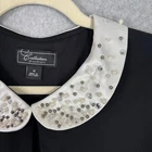 Dress Barn Blouse Womens Medium 10 Black Sheer Satin Collar Pearls Witchy Goth Whimsy Chiffon Peplum Long Sleeve Balloon Corp Career Work Office Business Church Beads Sequins Feminine Romantic Lined EXCELLENT Pre-owned condition: minimal to no signs of wear, no stains or holes SKU 6186 **Please see all pictures for full item condition, details, and approximate measurements** - Ships Same/Next Day, Professional Seller, Offers Welcome, Like or watch for price drops - Item in photos is exact item you will receive - I list new items daily, be sure to browse my store/closet for more items - Bundle pricing and combined shipping available for additional savings - Feel free to send a message