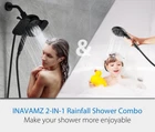 10" Dual-Purpose Shower Head Combo: 2-IN-1 shower heads with 10" rainfall shower head and handheld shower head, which can be used together or separately, allowing you and your family to enjoy 20 different spa-like waterfall combination showering. Easily switch between different modes to suit your needs with black knob 10 Settings Handheld Showerhead with Pause Switch: This high-pressure handheld shower head offers 8 spray settings and 2 power jet modes, whether it's a relaxing shower or a quick shower, there's a spray to meet your family's showering needs for men, women, children. Just turn the handheld knob to switch 2 power jet modes to clean bathtubs, tiles, pets, etc. Showerhead built-in one-touch pause buttonallows for quick and convenient water flow control, make showering and cleaning easier Upgraded Filtered Handheld Shower Head: Our shower handle adopts electroplating process and reaches the CASS4H level, far away from burst and leakage. Shower head filter equipped with high-quality KDF, calcium sulfite, coconut shell balls, vitamin C, ceramic balls ect and other 15 stage filter layers to effectively reduce residual chlorine, heavy metals and harmful substances in bathing water. 60″ shower hose is made of 304 Stainless Steel, the end of hose adopt 360° flexible design, no worry of hose wrap anymore (Note: 15 Stage Filter is Pre-installed on the shower handle 2.5GPM High Pressure Shower Head: Designed with unique technology, high pressure and water saving. Filtering bath water without impairing the flow of water provided by the shower head. Let you enjoy a cleaner and more comfortable shower Easy Installation & Suitable for Most Family: Featuring universal G1/2 connector that fits most American family, no plumber needed, easy to install. With our showerhead, you can enjoy a completely relaxing shower moment after get off work. You will also feel the convenience of the detachable showerhead, which can not only bathe your child or pets, but also clean your bathroom