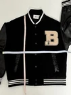 The Black Air Varsity Jacket for men is a stylish and casual addition to any wardrobe. Made with leather outer sleeves and a snap front closure, this short-length jacket features slash pockets for added convenience. Perfect for autumn, winter, summer, or spring, it is ideal for walking or playing basketball. With a classic black colour and a college theme, this Front brand jacket exudes a sporty and trendy vibe. The regular fit make it comfortable to wear, while the varsity style adds a touch of retro charm. Whether you're heading to a game or just hanging out with friends, this versatile jacket is a must-have for any collection. Pit to pit 58cm Aus size large