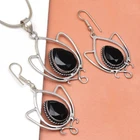 Colour: Black Main Stone Shape: Pear UPC: does not apply Vintage: No Gemstone Clarity Grade: Eye Clean Type: Jewelry Set Country of Origin: India Base Metal: Brass Color: Black Main Stone Creation: Lab-Created gtin13: does not apply Theme: Beach, Beauty, Ethnic, Family & Friends, Halloween Customised: No Main Stone Colour: Black Handmade: Yes Metal Purity: Unknown Secondary Stone: No Stone Wholesale: Yes Material: Crystal, Stone Main Stone: Black Spinal Main Stone Treatment: Not Enhanced Set Includes: Pendant, Earrings Ring Size: Unknown Cut Grade: Excellent Seller Warranty: No Antique: No Customized: No Main Stone Color: Black Country/Region of Manufacture: India Occasion: Anniversary, Birthday, Christmas, Engagement, Mother's Day, Wedding, Valentine's Day Brand: Unbranded Features: Adjustable, Engraved, Stackable Metal: Silver Plated