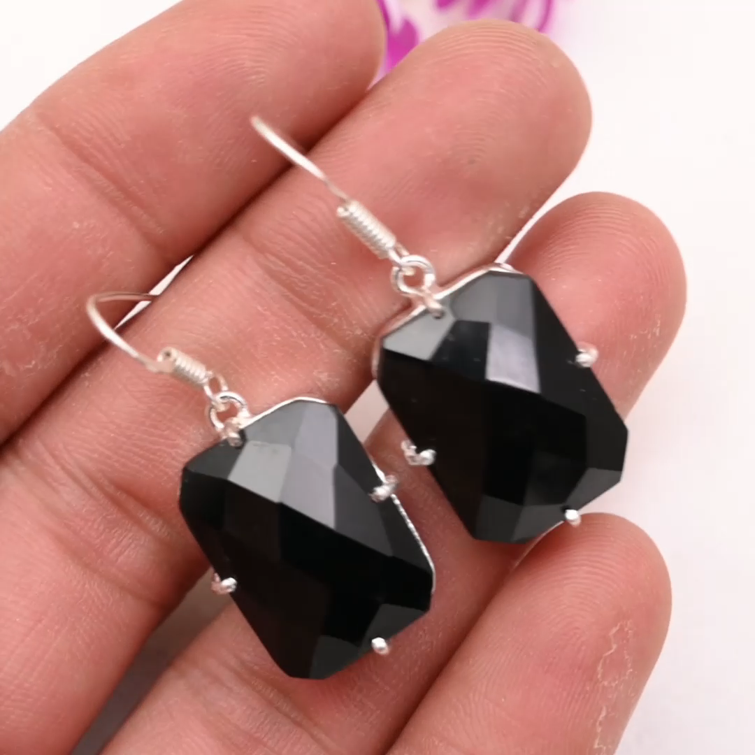 Base Metal:Sterling SilverType:EarringsCut Grade:ExcellentMain Stone Color:BlackTotal Carat Weight:10 carat and aboveCountry of Origin:IndiaCollection:HandmadeColor:SilverDiamond Color Grade:N/AShape:Same As PictureOccasion:Anniversary, Birthday, Christmas, Engagement, Father's Day, Mother's Day, Valentine's Day, WeddingTheme:Beauty, Bohemian, Ethnic, Halloween, LoveItem Length:1.57 "Brand:HandmadeSeller Warranty:YesNumber of Gemstones:2Style:Dangle/DropCertification:N/ADiamond Clarity Grade:N/AMain Stone Shape:CushionSetting Style:ProngMetal Purity:925Country/Region of Manufacture:IndiaEar Area:LobeMaterial:Stone, GemstoneMain Stone Creation:Lab-CreatedMain Stone:SpinelSecondary Stone:N/ANumber of Diamonds:N/AMetal:Sterling SilverMain Stone Treatment:Not EnhancedClosure:HookColored Diamond Intensity:N/A