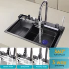 FREE SHIPPING 30 DAYS GUARANTEE PREMIUM QUALITY GOOD SERVICE Description Description: Easy Integration: With a mid-counter basin installation design, this recessed drop-in sink can be directly installed into the pre-cut hole on your countertop, simplifying setup Improved Protection: Crafted from high-quality 304 stainless steel, featuring nano-coating surfaces for a long-lasting bright appearance, excellent hardness and durability, and rust-proof performance Efficient Cup Washer: With an added cup washer and a easy control drain button for efficient cleaning, you can enjoy the convenience of high-pressure waterflow without getting your hands wet Effortless Cleaning: With a uniquely designed faucet that boasts three water spray modes, including an innovative waterfall feature, this single bowl kitchen sink makes cleaning dishes and vegetables a breeze. The 360° pull-out faucet further eases the cleaning process Suitable for Any Space: This single bowl kitchen sink comes with basic accessories to suit multiple environments, such as bar counters, kitchens, laundry rooms, outdoors, and public areas, exceeding your expectations Upgrade your kitchen with a quality mid-counter basin sink installation design made with 304 stainless steel. The easy drainage keeps your hands dry while washing up. Experience innovative faucet design with three water spray modes and waterfall style. Perfect for bar counters, kitchens, laundry rooms, outdoors and public areas. Specifications: Product name: kitchen sink top mount Color: Black Sink size: 750x450x220mm/29.5x17.7x8.6in Inner diameter: 700x350x220mm/27.5x13.7x8.6in Outer diameter of drain hole: 110mm/4.3in Inner diameter of drain: 90mm/3.5in Diameter of drain pipe: 45mm/1.7in Sink material: 304sus stainless steel Sink thickness: Panel 3mm/0.01in Pipe: 0.8mm/0.03in Packing list: Basin x1 Drainer x1 (gourd color random) Drain pipe x1 Bin in basin x1 Chopping board x1 Stainless steel whale faucet x1 Angle valve x2 Hot and cold hose x2 Table control drain x1 Triangular drain basket x1 Notes: 1. Due to different lighting and screen settings, the item color may be slightly different from the picture. 2. Due to different manual measurements, please allow a 1-2cm difference in size. SHIPPING 1. The shipping rates listed are only for residential or commercial destinations in the continental 48 United States. All international sales will go through eBay Global Shipping Program.please ask us if there are any questions. 2. We only ship the item to the address that is sent to us at the time of checkout. Please verify the correct shipping address in your PayPal account before making your payment. If we ship your item to an old or invalid address and you are not able to locate the item, we are not responsible for shipping a replacement. 3. Currently, we do not ship to Hawaii, Alaska, Puerto Rico,APO/FPO/PO Boxes. 4. We use USPS & FedEx as shipping method. PAYMENT 1. We accept PayPal and all forms of credit card. 2. We will only ship to the confirmed Paypal shipping address given with the payment.responsible for shipping a replacement. 3. We do not offer local pick up service. RETURN 1. 30 days Money Back Guarantee. All of our products come with a return period of 30 days from the date of original delivery. 2. If any package that needs to be returned, please contact our customer service first to receive a RMA form. 3. All return items MUST be in brand new condition. 4. If you are not completely satisfied with your purchase or no longer need the item (if unopened) within the 30 days, we will assist you with a return for full refund minus a 20% processing fee. 5. If there is an issue of damage, please send us pictures through mail. Depending on the damage, we will take further action to solve the problem as soon as possible. 6. Please do not ship any goods to any address without our authorisation as it might lead to you not receiving your refund. [Please do not initiate a return without our authorisation as this could result in a delay in issuing your refund.