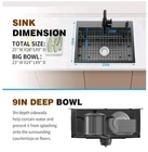 This sleek black stainless steel sink instantly upgrades any kitchen with its modern look and durable 11-gauge construction. The included bottom grid, strainer baskets, and drain assembly make cleanup effortless while adding elegant functionality. Its generous 25x18 single bowl provides ample space for washing dishes, and the top-mount design installs easily. The scratch-resistant finish maintains its stylish appearance even with daily use. Perfect for both looks and practicality, this sink combines premium materials with thoughtful accessories to create a centerpiece that's as functional as it is beautiful.