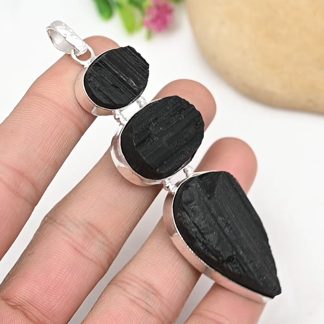 Black Tourmaline Rough Gemstone Pendant in 925 Sterling Silver Handmade Jewelry Gift
