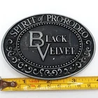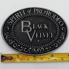 Black Velvet Whisky Belt Buckle Spirit Of Pro Rodeo 1979 Rodeo Western Vintage -Measures about 4" x 2.75" -Several scuffs n scrapes from age and wear -Please view all photos for more details Size: Unisex 4" x 2.75" Condition: Pre-Owned Good -Measures about 4" x 2.75" -Several scuffs n scrapes from age and wear -Please view all photos for more details