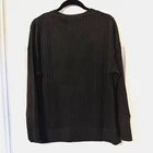 This XL black V-neck women's long sleeve sweater is a stylish and versatile addition to any wardrobe. Made from polyester and featuring a wide ribbed knit pattern, this pullover sweater is perfect for casual occasions in the winter and fall seasons. With its regular fit and solid color, it is a timeless piece that can be easily paired with different outfits. Easy to care for with machine washable instructions, this sweater offers both comfort and style for the modern woman. Length 27 inches Pit to pit 21 inches Sleeve 24 inches