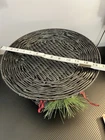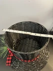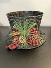 Black Wicker Snowman Hat Planter Display 7” X 13” Red Black Sash W/ Pine Accent good pre-owned condition - no flaws noticed