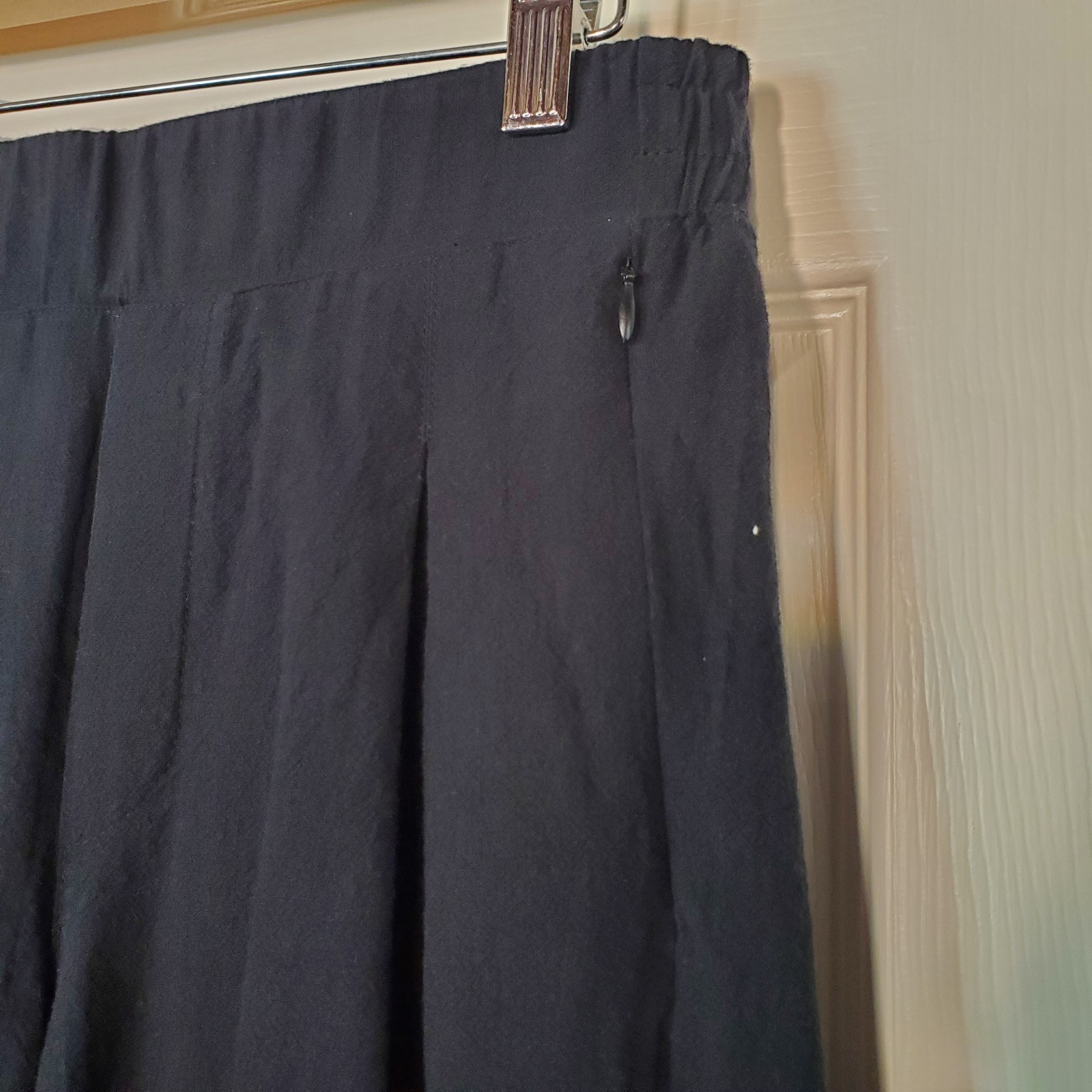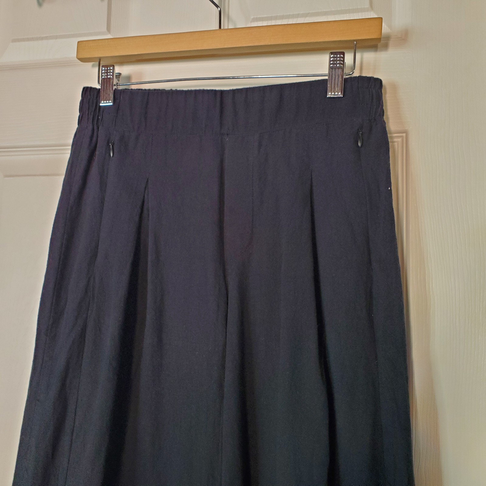 Pull-on style, High-waisted, two side pockets with zipper, small slits at hem. It's in excellent condition. Please see pictures for details and let me know if you have any questions I ship the next business day