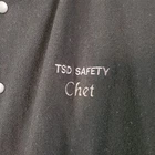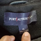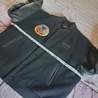 Classic black varsity jacket by Port Authority. Features leather sleeves and embroidered patch commemorating The Fallen Heroes of 9/11. Comfortable ribbed collar and snap front for easy wear. Fully quilted lined. It has a couple of minor scratches on one of the sleeves, but other than that it's in very good condition. Please see pictures for details and let me know if you have any questions I ship the next business day