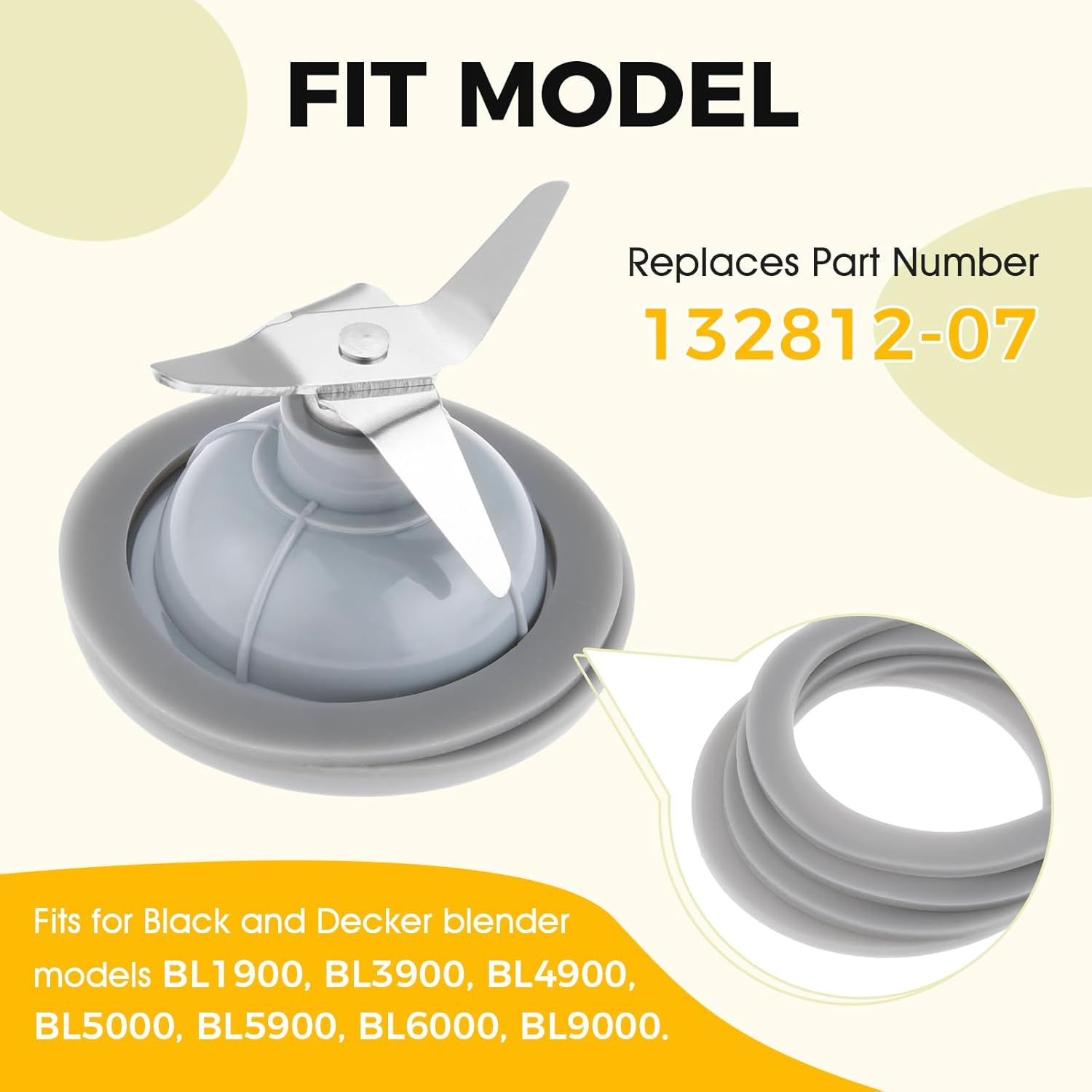 Store New Arrivals Add to Favorite View Feedback Contact Replacement for Black and Decker Blender Gasket Rubber Seal Gasket Sealing O-Ring, Replace 132812-07, Compatible with Black & Decker Blender BL1900 BL3900 BL4900 BL5000 BL5900 BL6000 (Pack of 4) Description Item model number 132812-07 Material Rubber Color Grey Brand DRELD Item Diameter 66 Millimeters Nominal Inside Diameter 51 Millimeters Package Dimensions 3.15 x 2.76 x 0.35 inches; 0.35 ounces Manufacturer DRELD > [PRODUCT NOTE]: Application to the common replacement part, seal sits between the top of the blade and the bottom of the jar. Dimension-OD: 66mm/2.6inch, ID:51mm/2inch, Thickness: 2mm/0.079inch. Please check the diameter of the ninja mixer before you buy. > [PREMIUM QUALITY]: Strict quality control standards to Build and test. Not Genuine, but the quality is better than the OEM. Made by Premium Quality food grade rubber, superior toughness, not easy to deformation, convenient to clean. Perfect match and Good Choice for Direct replacement of original parts, easy installation, can replace juicer or blender original gasket. > [PRODURT COMPATIBLE]: Replaces Black and Decker Part Number 132812-07. Fits for Black and Decker blender models BL1900, BL3900, BL4900, BL5000, BL5900, BL6000, BL9000. > [BENEFIT TO BLENDER]: Better protect the mixer and seal it, replace the old seal and keep the lid clean and watertight. It can be used for a long time. The rubber sealing O-Ring gasket is a necessary blender accessory in case of emergency. > [GUARANTEE AND SERVICE]: The rubber sealing O-Ring gasket Replacement Part completed with a One-year Warranty. Save much money off dealer prices. If the O-Ring gasket once failed on your blender, simply contact us for a replacement or refund. Product Description Package Included: 4Pcs x Rubber Blender Gaskets PREMIUM QUALITY: Not Genuine, but the quality is better than the OEM. Made by Premium Quality Material APPLICATION: A common replacement part, this seal sits between the top of the blade and the bottom of the jar. Will solve the problem of water leakage in the mixer and save the cost of buying a new mixer. SAFE: Superior toughness, not easy to deformation.Better protection of the blender and play a role in sealing ABOUT US We offer the best prices around on high quality products. Our E-store includes media such as books, movies, music and games while offering electronics, toys, sporting apparel, clothing, tools, general home, garden items and more. SHIPPING We are always working hard to ensure your package arrives as soon as possible. Please understand that some factors like weather, high postal traffic, and the performance of shipping companies are outside of our control. We offer free shipping to the lower 48 states and ship within 2 business days of payment, usually sooner. We do not accept P.O. Boxes. Please provide a physical address. RETURNS We offer a 30-Day Return Policy on items which you are not completely satisfied with. You have the option for a full-refund or an exchange of the item. No returns are available on items shipped outside of the USA. PAYMENT We accept PayPal. CONTACT US This page content is yet to come Please ad us to your favorite seller and visit again later Thank You CUSTOMER SATISFACTION We try our very best to make sure every customer is completely satisfied. If there's a problem, message us! We're happy to help.