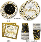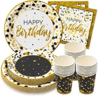 Store New Arrivals Add to Favorite View Feedback Contact Fast deliveries to the customer's home Quality customer service John Make the customers happy! Black and Gold Birthday Plates - Set of 24 - 9 and 7 Inch Plates, Napkins, and Cups, Sturdy 400 GSM Weighted Black and Gold Happy Birthday Decorations for Men, Women, Kids, and Tweens Description Service for 24 Black and Gold Party Supplies - Enjoy black and gold party plates for 24 invited guests with this premium set of Happy Birthday party supplies! The set includes 9-inch dinner plates, 7-inch salad/dessert plates, 8 oz cups and 3-ply folding napkins. Elevate the Black and Gold Birthday Party Mood - Set the tone for any party, from fun & festive to exquisite & ornate! Perfect for double digits birthday decorations, 40th birthday supplies, 50th birthday party supplies, teen birthday decorations and more. Thicker and Stronger - Not all black and gold paper plates are created equal... Unlike others made from 350 GSM paper, Royal Bluebonnet brand black and gold birthday plates are crafted with 400 GSM whiteboard paper that is thicker and sturdier and can handle hot, cold and wet foods without leaking. Perfect Black and Gold Birthday Party– As a US seller, we know the perfect colors for your birthday party celebration. These black and gold plates and napkins party supplies were designed to take your birthday party to the next level. Food Safe - Dimensions - All of Royal Bluebonnet’s black and gold paper plates and products are 100% food safe. Dinner plates are 9 inches in diameter, salad/dessert plates are 7 inches, cups hold 8 oz and napkins measure 6.5 x 6.5 inches folded (13 x 13 unfolded). Product Description 1 Thicker and Sturdier 2 Easy To Coordinate 3 24 Set of Party Supplies The video showcases the product in use. The video guides you through product setup. The video compares multiple products. The video shows the product being unpacked. Host a Black & Gold Birthday Party with Royal Bluebonnet! Quantity 24 Dinnerware Sets Quantity 24 Bags and Stickers Quantity 1 Cupcake Stand Quality 400 GSM Paper Plates Quality 120 GSM Kraft Paper Quality High-Quality Cardboard Special Features 7 and 9 inch plates Special Features 120 GSM Kraft Paper Special Features Double Sided Print Item model number Black and Gold Birthday Party Supplies Style Black and Gold Color Black and Gold Pattern Polka Dot Country of Origin China Item Weight 2.68 pounds Manufacturer recommended age 1 month and up Product Care Instructions Disposable Shape Round Is Dishwasher Safe No Product Dimensions 13.19 x 9.52 x 3.23 inches Material Paper Occasion Birthday Is Microwaveable No ABOUT US We offer the best prices around on high quality products. Our E-store includes media such as books, movies, music and games while offering electronics, toys, sporting apparel, clothing, tools, general home, garden items and more. SHIPPING We are always working hard to ensure your package arrives as soon as possible. Please understand that some factors like weather, high postal traffic, and the performance of shipping companies are outside of our control. We offer free shipping to the lower 48 states and ship within 2 business days of payment, usually sooner. We do not accept P.O. Boxes. Please provide a physical address. For shipping outside of the continental USA, we only use eBay's Global Shipping Program. The item is shipped to KY and then sent to the rest of the world. International customers are responsible for all duties and taxes. Continue to 'check out' to calculate costs for shipping the item to your country. Messages regarding eBay's Global Shipping Program MUST be directed at eBay EXCLUSIVELY. RETURNS We offer a 30-Day Return Policy on items in which you are not completely satisfied with. You have the option of a full-refund or an exchange of the item. No returns are available on items shipped outside of the USA PAYMENT We accept PayPal. CONTACT US This page content is yet to come Please ad us to your favorite seller and visit again later Thank You CUSTOMER SATISFACTION We try our very best to make sure every customer is completely satisfied. If there's a problem, message us! We're happy to help. WE ACCEPT