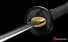 Product Parameter : Package: 1sword+1certificate+1bag Name: 幽羽(TYQ311) Craft: Fully hand forged,mirror polished,clay tempered,oil quenching,etc. Material: Clay tempered T10 high carbon steel Fittings: Alloy Ito&Sageo: Black Japanese synthetic silk Saya: L acquered wood saya with golden spots Hardness(HRC): 60 Overall: 103cm/40.6" Blade: 70cm/27.5'' Handle: 26cm/10.24'' Widdth: 3.2cm/1.26'' Thickness: 0.7cm/0.28'' Bo-hi: without blood groove Hamon: handmade real hamon It' s a functional sword,you can use it to cut bamboo,paper,water bottles,etc. * Handmade swords, each one may vary slightly in color, size, weight. Each sword is unique. Manual grinding: Using the unique bright stone of Longquan Town, hand grinding, very test sword casting skills and technology, grinding out the pattern effect is special texture! Ancient quenching: Modern vacuum heat treatment can meet the hardness requirements of most swords, but the traditional quenching method has better effect, can soften the medium strip steel, and the hardness is higher. Tsuba & Fuchi & Kashira & Habaki Saya Additional Service About us Delivery details Tsuba & Fuchi & Kashira & Habaki Alloy Tsuba Iron Tsuba ( extra $10) Brass Set ( extral $50 ) Alloy Fuchi & Kashira Habaki TSUKA-ITO & SAGEO Tsuka-ito is the wrapping of the tsuka and sageo (下緒 or 下げ緒) is a hanging cord that is passed through the hole in the kurigata (栗形) of a Japanese sword's saya. SAMEGAWA Samegawa(鮫皮)is the ray or shark skin wrapping of the tsuka (handle/hilt). Saya Please contact us before placing an order to see if there is any stock available, as well as any additional charges. OX Horn Saya Additional Service It's free for engraving English words, Chinese Characters and Japanese Kanji , etc. You need pay extral $20-30 for engraving patterns. Hamon We can add or remove the machine-made wavy hamon for free. Bo-hi ( Blood Groove) Usually thought be used for bloodletting only. It is also used to lighten the weight of the sword. We can add or remove Bo-hi for free Sharpness Most of our blades are sharp. We can also make the blade unsharpened for free if you require. Colored Blade If you want to change to a different color blade, please contact us before purchase. Matching Swords Set If you buy one katana, we can make a matching Wakizashi or Tanto for you. The price varies from different swords. Please contact us if you need make custom matching set. About us We have our own sword-casting factory. The factory is located in Longquan, a small town with a long history of sword-casting in China. Most of the famous Swords in China are made there. Rich raw materials, skilled technology, traditional sword casting technology from generation to generation. Manual production really takes a lot of time. We will prepare most products in advance ,and arrange delivery within about a week. However, sometimes the delivery time is delayed due to weather or raw materials,etc. we hope to get your understanding. Feel free to contact us to inquire about the status of your order. Each handmade sword is unique. Our swords are great for gifts or for your own collection. Our swordsmithing master makes every sword attentively, hope you can feel our sincerity. We will also give you the best customer service, any questions please feel free to contact us. Delivery details a) Import duties, taxes and charges are not included in the item price or shipping charges . These charges are the buyer’s responsibility. b) If you do not receive the package, or the package is damaged during transportation. We'll take care of it. Please feel free to buy. c) If it is mentioned in the product description that the package includes the sword bag or sword holder , the style will be random. The sword holder or sword bag on the ebay picture is the props we use for shooting. If you really like a style, please contact us before buying. d) If you have any problem after recieve the package (wrong size, wrong style, etc.). We always provide you with the best after-sales service. Please give us a chance to help you before you give us a bad feedback . Thank you very much!