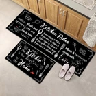 Kitchen Rug 2 Piece Set KITCHEN DECOR: Farmhouse theme rugs make your floor more eye-catching and comfortable. Simple and generous tableware pattern and cozy text design add more elegance and artistry to your house and create a cozy home. PERFECT SIZE: The Black White Kitchen Rug measures 17x30+17x47 inches and is 0.20 inches thick. It can cover the kitchen sink floor well with super absorbent, you don't have to worry about water splashing on the carpet. MAKING CRAFT: Farmhouse kitchen floor mat is made of high quality polyester fiber with classic printing process, it won't fade or shrink, each border is sewn tightly and can be reused for a long time. Suitable for all seasons. NON-SLIP BACKING: This area rug is equipped with a non-slip backing, which can effectively avoid slipping and scratching the floor. Suitable for entrance, living room, front door, laundry room, bathroom, kitchen, etc. EASY CARE AND SERVICE: This soft rug can be machine washed in cold water, please do not use bleach. If you have any questions about this rug, please feel free to contact us, we will reply as soon as possible within 24 hours and solve the problem for you.