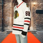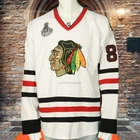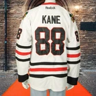 Relive the 2013 NHL Finals with this Reebok hockey jersey emblazoned with Kane's iconic number 88. A must-have for hockey enthusiasts and collectors, it features the official Stanley Cup Final patch and team crest, embodying the spirit of the game. Capture these moods: Stanley Cup excitement, sports memorabilia prestige, hockey fan culture, NHL Finals nostalgia, Reebok quality, authentic team spirit, collectible appeal, athletic memorabilia charm, competitive heritage, Kane's dynamic legacy made in Canada color: white everything is sewn on condition: 10/10 size on tag: 48 fits like: L mannequin is 6' 2" and a size medium length (from the front on either side of the collar down to the bottom edge): 31 armpit to armpit: 22 collar seam to end of cuff: 32 all measurements are in inches and taken with the garment laying flat any major defect will be mentioned and/or photographed 16596