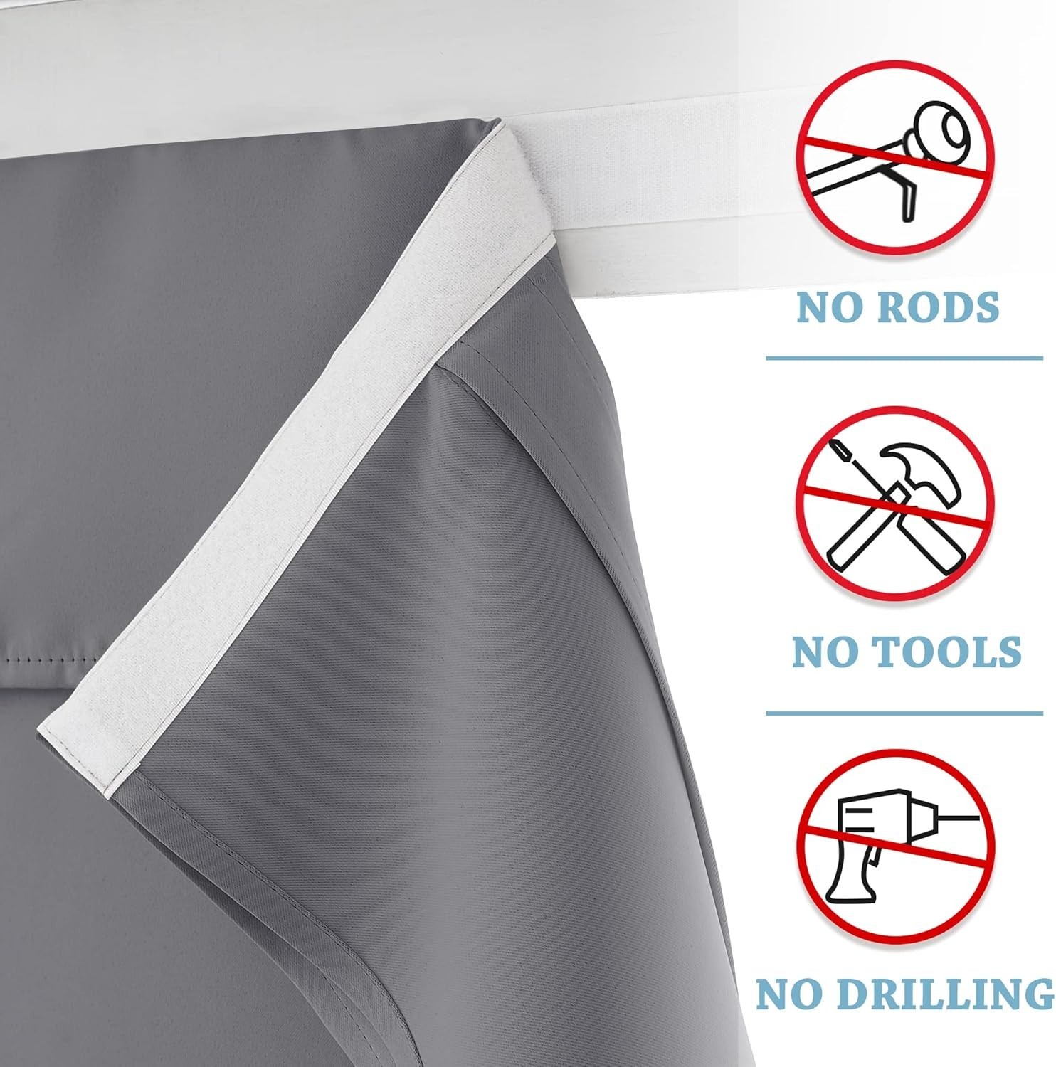 Blackout French Door Curtains, Room Darkening Shades Small Window Curtain Drapes Thermal Insulated Tricia Door Blinds for Classroom Glass Window, W26 x L40 inch, 1 Panel, Gray 100% Glass WELL MADE - All you need are included in the package. Package includes 1 panel ( each panel measures W 26" x L 40" ) + sticky strap. Curtains made of triple layers of blackout fabric, same fabic on both sides. EFFORTLESS INSTALLATION - Sticky stickers on top which is easy hanging and using on windows without rod. You can tie up the curtain with straps attached for sightseeing or tie down for full privacy. LIGHT BLOCK - Curtains can block 85-95% sunlights and UV rays ( Dark color works better ). The energy effcient door curtains minimize heating and cooling costs, while prevent your furniture from sun exposure. WIDE COMPATIBLITY - has various styles of CURTAINS to meet your ideal for home decor, which provide a harmonious window dressing and make your home lively. EASY CARE - Machine washable, using only non-chlorine bleach & warm iron when needed. Tumble dry low.