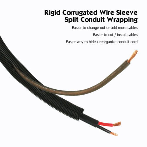 Features 3: Resistant to chemicals, cuts, etc Item must be returned within: 60 Days Features 2: Protects cables from automotive fluids, friction and punctures Features: Split for easy installation and cable access MPN: PET wire wrap harness cove Country/Region of Manufacture: United States Flame Retardant Grade: FV-2 Features 5: Corrugated Insulated Pipe Universal Cover Flex Type: Conduit Wire Loom Color: Black Model: Split Wire Loom Conduit Feature 3: thick enough to provide full protection for the wires All returns accepted: Returns Accepted Item Length: choose the size you want Condition: New Features 4: finished appearance by concealing unsightly wires Bearing pressure: ordinary Short Term Use Temperature: 105F - 290F Product structure: oth inside and outside are wavy flexibility UPC: 791751060749 Feature 2: split loom is split and easy to put wires in Restocking Fee: No Manufacturer Warranty: 3 years Working Temperature: 105F - 220F Application: Used to industry,automotive,home & office etc Return shipping will be paid by: Material: Polypropylene Feature 5: used to wrap wires,and make cables wires neat and orderly Cutting fluid resistance: very good Oil resistance: Very good Feature 4: resistance to abrasion & harmful chemicals corrosion. Feature 1: flex material,slit that runs down length of this cable hider. Brand: morethink - Spliit Wire Loom Item Diameter: choose the size you want Refund will be given as: Money Back