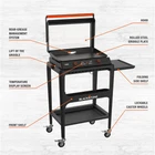 Product details Bring what you love about cooking on a Blackstone indoors with this Blackstone E-Series 22” Electric Tabletop Griddle with Prep Cart. Whether you want to place this griddle right on your tabletop or use the cart to wheel it out onto your patio, this electric griddle and cart combination means you can cook on your Blackstone indoors or outdoors. This griddle includes a digital temperature display and a removable transparent glass hood that allows you to easily keep an eye on your food. The non-stick griddle surface and Blackstone-patented Rear Grease Management system make grease management and cleanup so much easier. With 312 square inches of cooking space and two variable temperature zones, you can create delicious and savory meals for breakfast, lunch, and dinner whether indoors or out. Blackstone E-Series 2-Burner 22" Electric Tabletop Griddle with Prep Cart 312 sq in cooktop surface with 2 independently controlled burners Non-stick ceramic titanium-coated griddle surface for easy cooking and cleanup Large LCD digital display for easy readability The patented rotate and remove glass hood provides sleek protection and traps heat for cooking and steaming The Blackstone-patented Rear Grease Management System and a dishwasher-safe grease cup make cleanup quick and easy Counter-height cart with a folding side shelf makes it possible to use the griddle indoors or outdoors 1600W/120V/10A electrical requirements Assembled dimensions (including cart): 37.62" L x 20" W x 40.16" H 1-Year Limited Warranty Customer Service: +1 (435) 252-3030 Ext. 1 Model # 8003