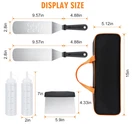 Blackstone Griddle Accessories Kit, 6pcs Blackstone Accessories kit for Blackstone and Camp Chef, Griddle Accessories Kit with Griddle Spatula& Carry Bag, Great for Outdoor BBQ, Teppanyaki and Camping Brand XHEEPEAN Material Stainless Steel Item dimensions L x W x H 15 x 4.5 x 4.5 inches Handle Material Acrylonitrile Butadiene Styrene (ABS) Included Components Flatware About this item Multipurpose Blackstone accessories kit: 2 oversized professional-grade restaurant-style stainless steel spatulas, great for flipping beef cubes, burgers, pancakes, fried egg, rice, noodle, veggies, and all other grill or griddle applications. Each tool is made to a high standard; The perfect heavy-duty tool kit for any novice or professional alike. Must-Have Griddle Accessories: This set also include 1 stainless steel chopper/scraper to dice food and scrape griddles clean. 2 premium leak-free fine tip bottles for condiments and liquids like oil or water, and 1 storage bag. Blackstone accessories will please everyone at your BBQ, weekend party, or your everyday meals. Premium Stainless Steel: Griddle accessories are made with stronger and thicker stainless steel. Heat-resistant and nonslip, the handle of the abs provides a comfortable grip, with hanging holes for easy storage. you can easily enjoy your grilling, camping, or cooking without worrying about your tools bending, breaking, or rusting again. Blackstone griddle accessories are dishwasher safe for quick and easy BBQ clean-up. Perfect Gift Choice: Beautifully designed gift box with quality packaging, which is an ideal gift choice for Father's Day, Thanksgiving, or Christmas. These practical Blackstone accessories are for most grills and are suitable for indoor and outdoor cooking. It can meet all the essentials of your daily backyard barbecue and camping activities. Whether you are in the kitchen, your backyard, or out camping. You can enjoy BBQ time with your family and friend easily. . We offer FREE shipping on all orders! . We ship within Five business days of payment, usually sooner. . We use a selection of shipping services such as UPS, FedEx, USPS etc. . We only ship to the lower 48 states, no APO/FPO addresses or PO Boxes allowed. . Local pickups and combined shipping options are not provided at this time. . Your satisfaction is a wonderful reward for our efforts. Please assist us by leaving a positive review if you feel pleased with our service. . In the event that you encounter any difficulties related to your order, please do not hesitate to reach out to us directly through the Messaging system on the Ebay platform. Kindly consider opening a COMPLAINT or a RETURN REQUEST as a last resort, only after all other possible measures have been attempted and we have been unable to provide you with assistance. . We will get in touch with you within 24 hours and make every effort to ensure your satisfaction. . Please rest assured of our service quality.